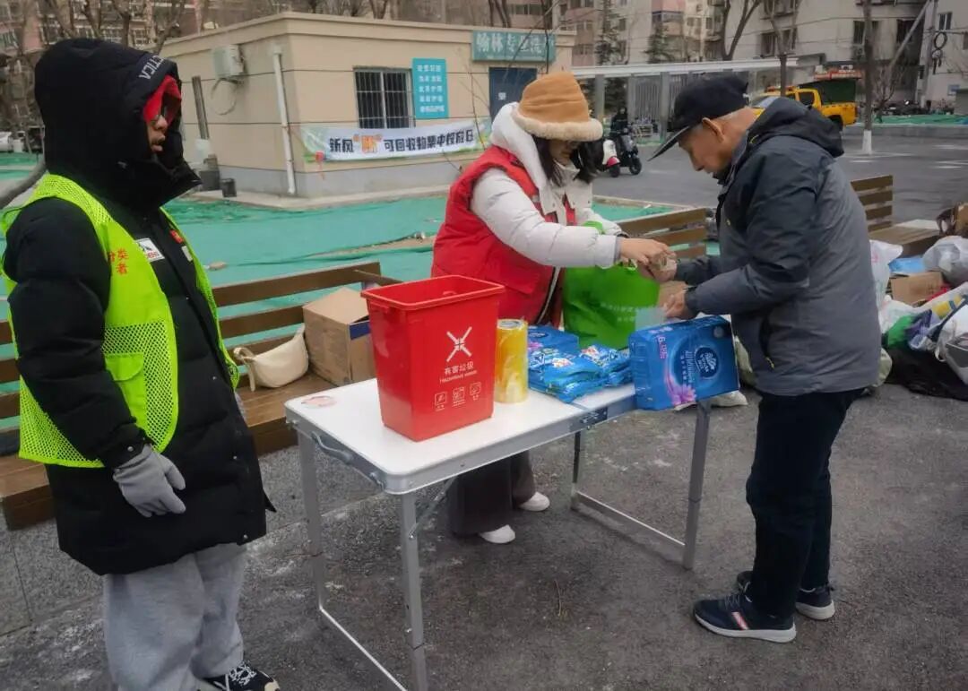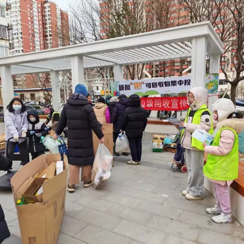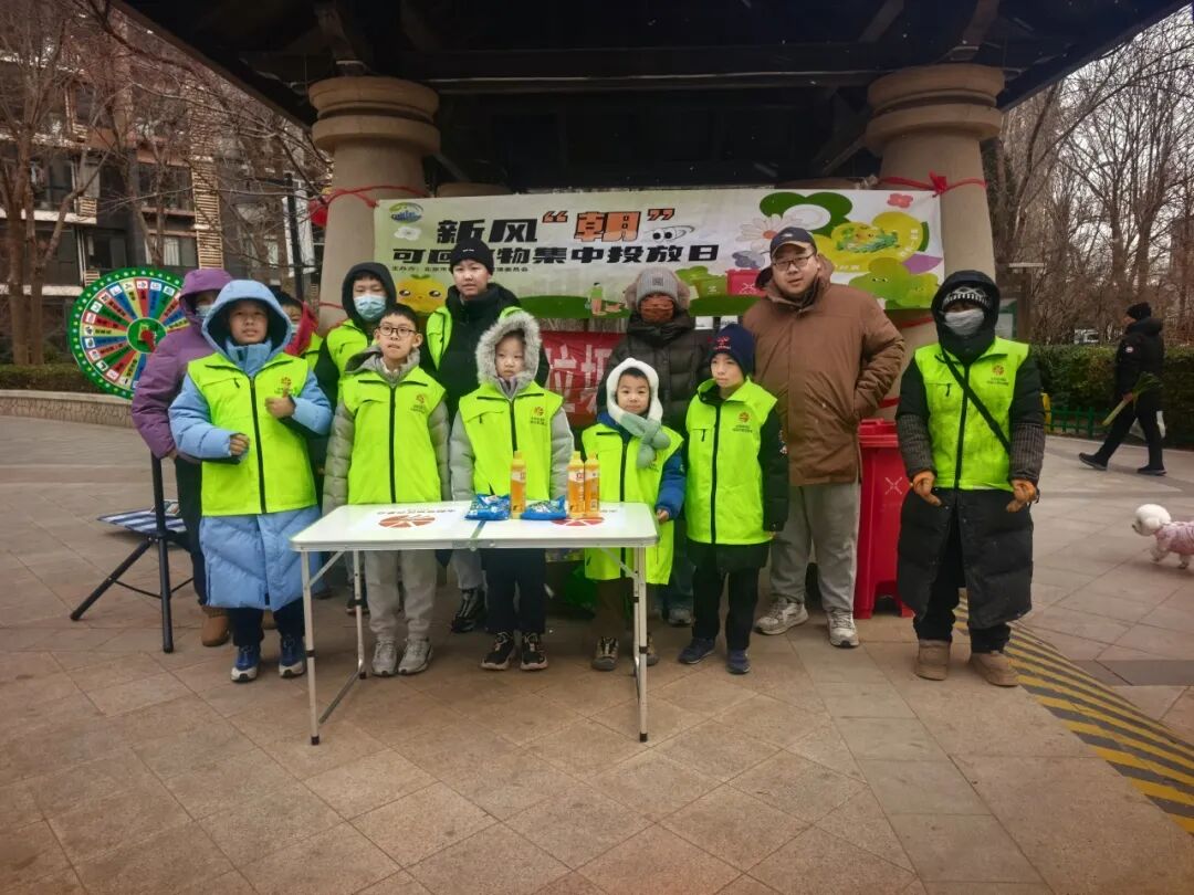 2026年,这场“绿色之约”在初雪中再度启航。1月17日,太阳宫地区20个指定点位格外热闹——“新风‘朝’可回收物集中投放日”如期而至。