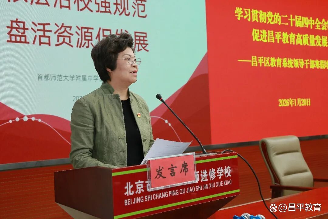 1月20日至21日,昌平区委教育工委、区教委组织开展“学习贯彻党的二十届四中全会精神 促进昌平教育高质量发展——昌平区教育系统领导干部寒假培训班”。本次培训采用“线下主会场+线上分会场”相结合的形式,全区公办中小学、幼儿园中层以上管理干部,教委机关及直属单位全体干部约1500人线下参会;民办中小学、民办幼儿园等500余名管理者通过线上平台同步参训。