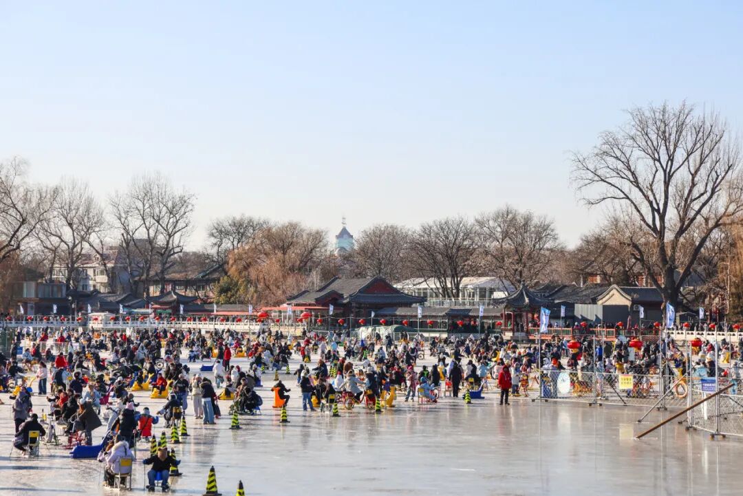 什刹海冰场分为前海家庭游乐场和后海冰上社交场。前海区,冰上自行车、传统冰车、卡通冰橇是孩子们的游乐天堂,如果你也是第一次上冰,不妨从这里开始,扶着彩色海豚冰车,慢慢感受冰上的韵律。而在后海区,你则会看到在冰面上熟练划出流畅弧线的冰上老手,这里是速滑爱好者们风驰电掣的场地。