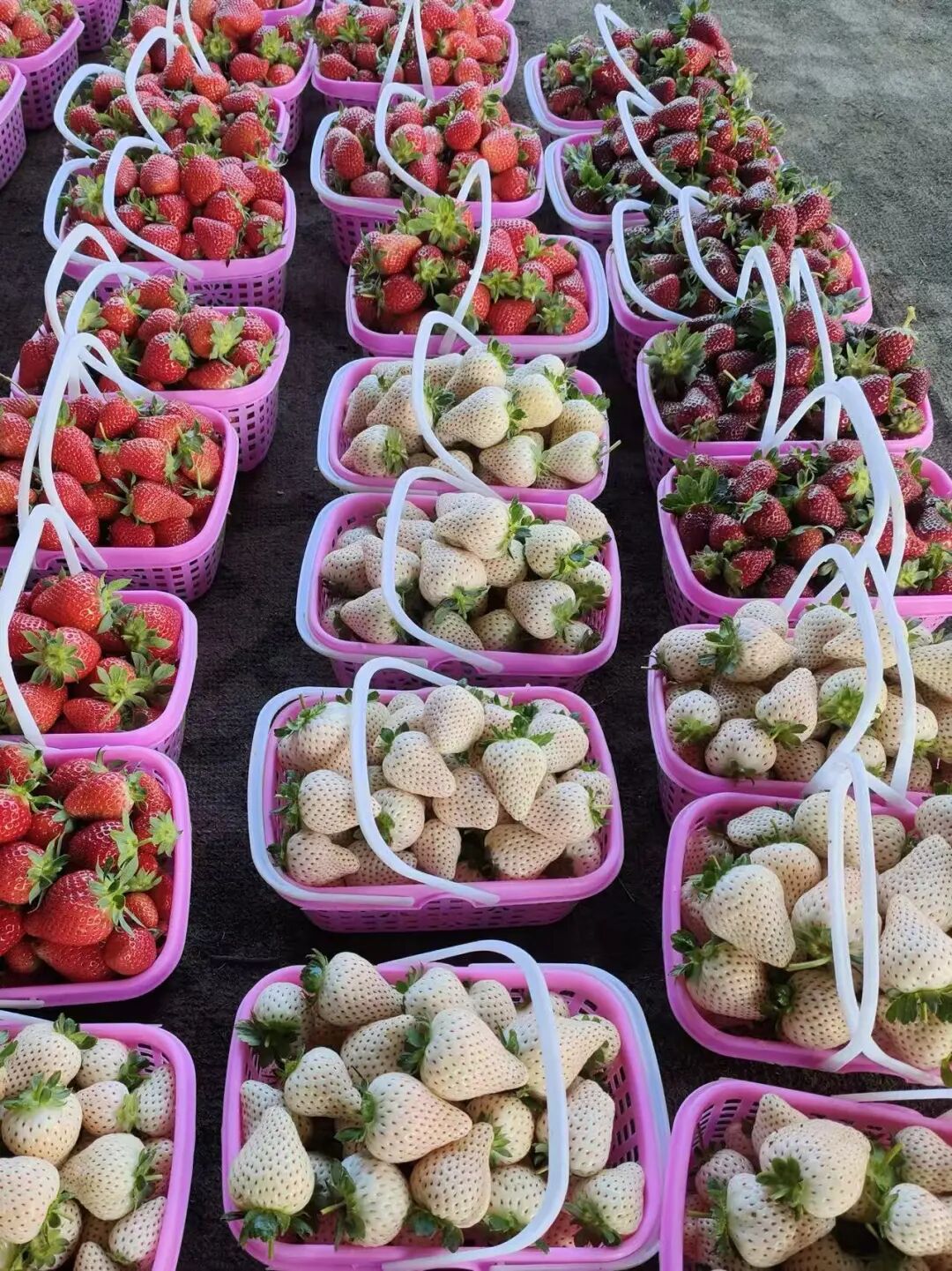 红色、白色、黑色三个草莓品种 草莓采摘园 供图