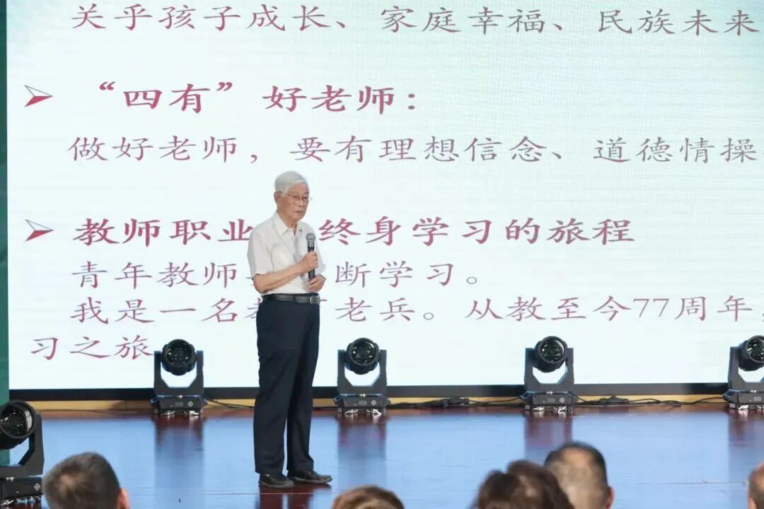 “没有爱就没有教育,没有兴趣就没有学习;教书育人在细微处,学生成长在活动中。”当96岁的北京师范大学资深教授、知名教育家顾明远站在讲台上,对台下的青年教师分享任教生涯的点点滴滴,“教育家精神”便从纸上活了过来。