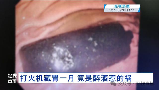 长江航运总医院普外科二病区医生 郭敦伟:“当时他跟朋友在外面聚餐,然后喝酒,当时喝的酒比较多,怀疑当时就是把打火机吞进去了。”