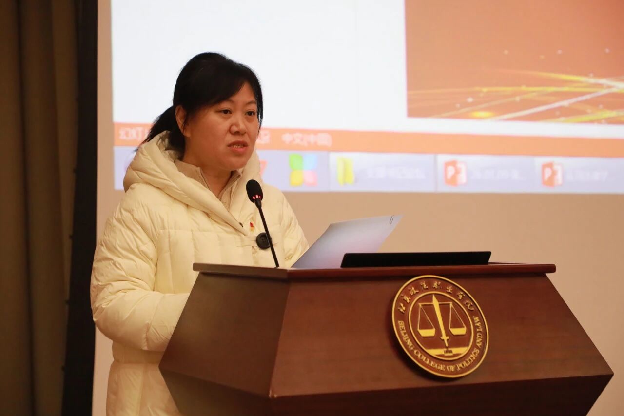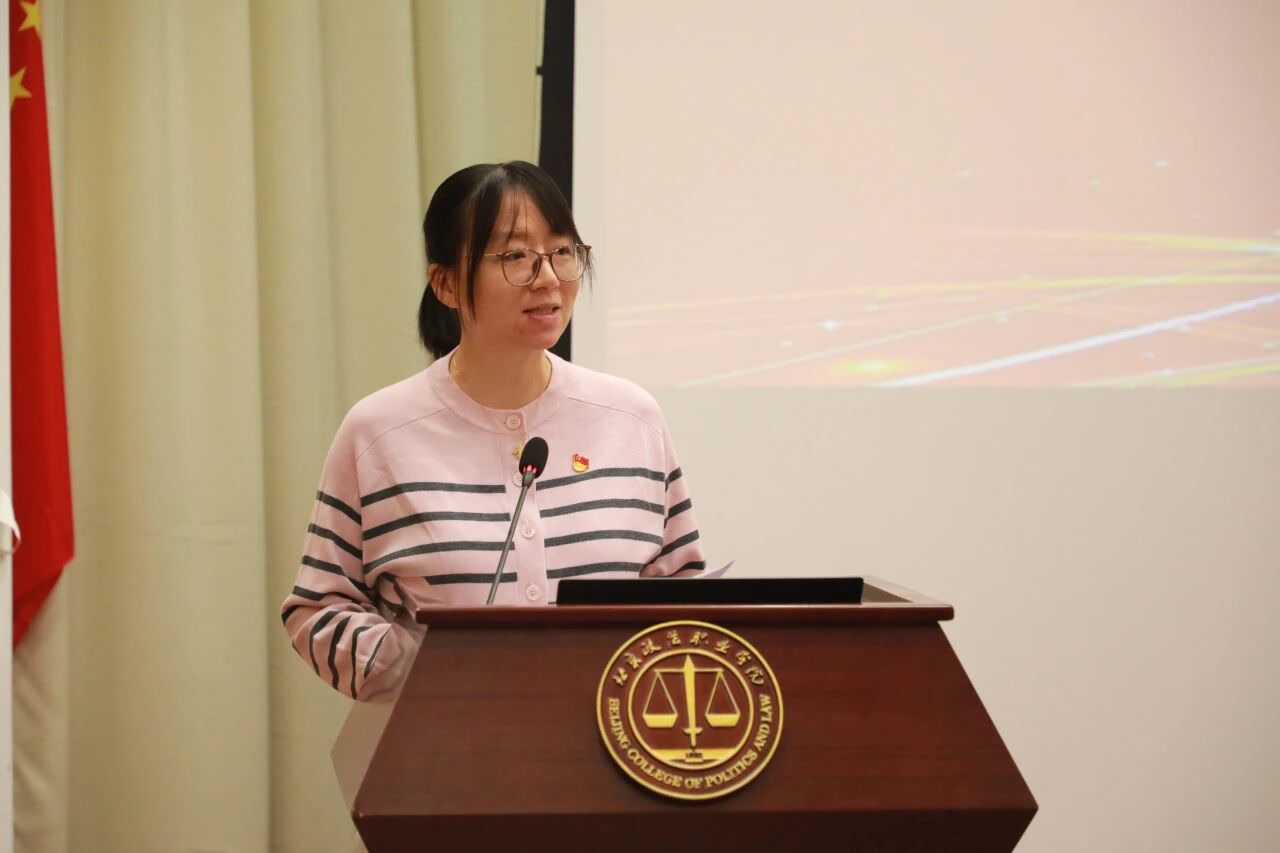 安防科技学院党总支学生党支部书记韩红梅以“从‘新’出发、向‘实’而行”为理念,向大家介绍了党支部“党建学习+专业实践”的经验做法,探索出紧扣专业、服务实践的党建融合路径。
