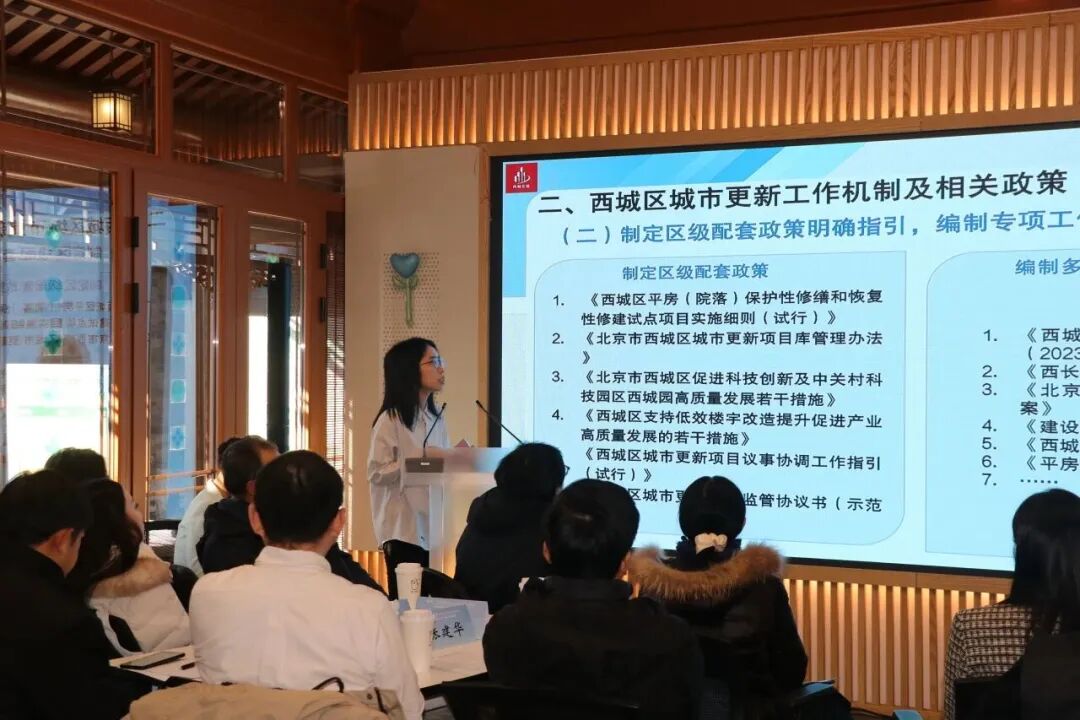 区住房城市建设委李圣楠从城市更新工作背景入手,具体讲解了西城区城市更新工作机制、相关政策以及下一步发展方向。