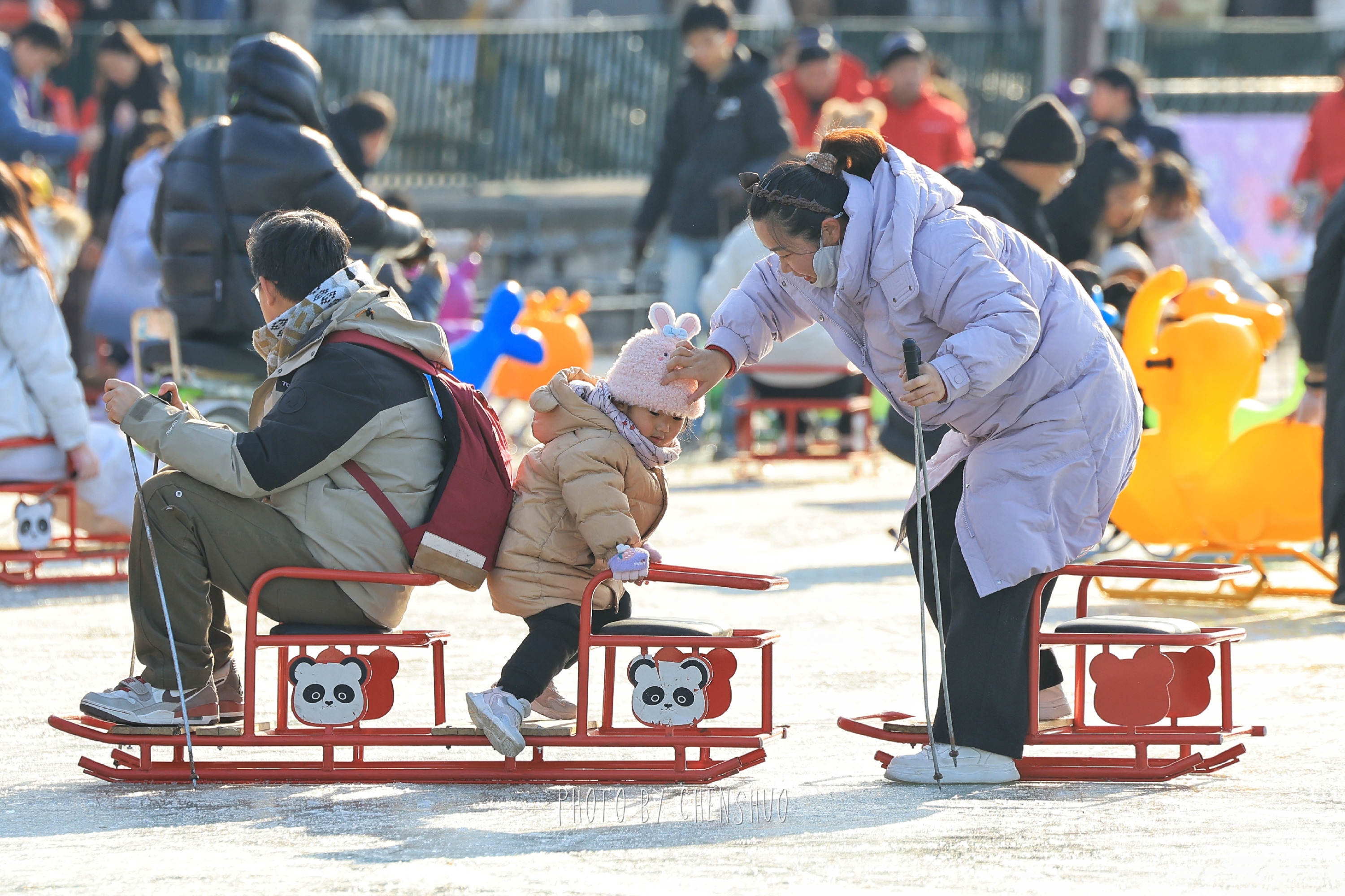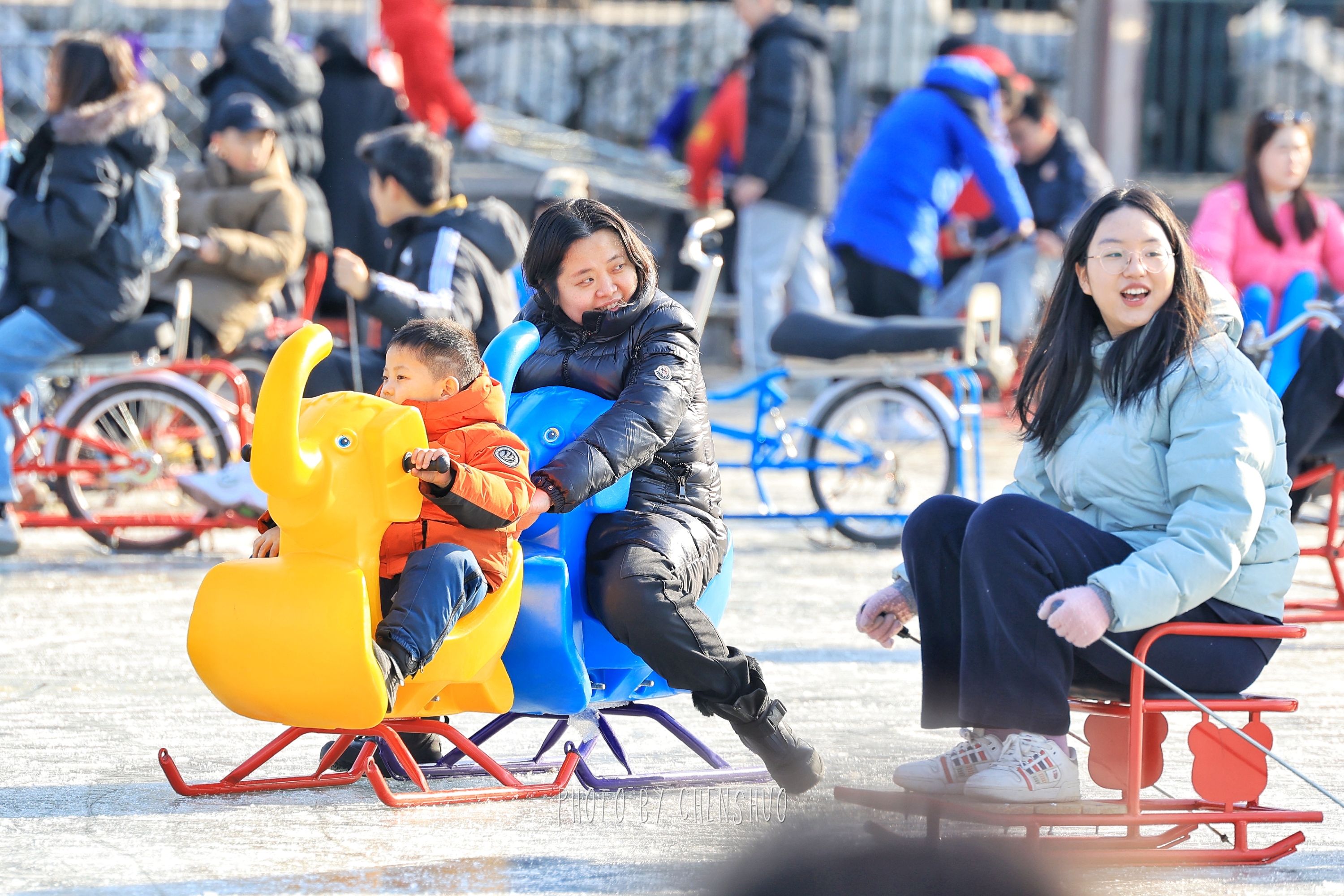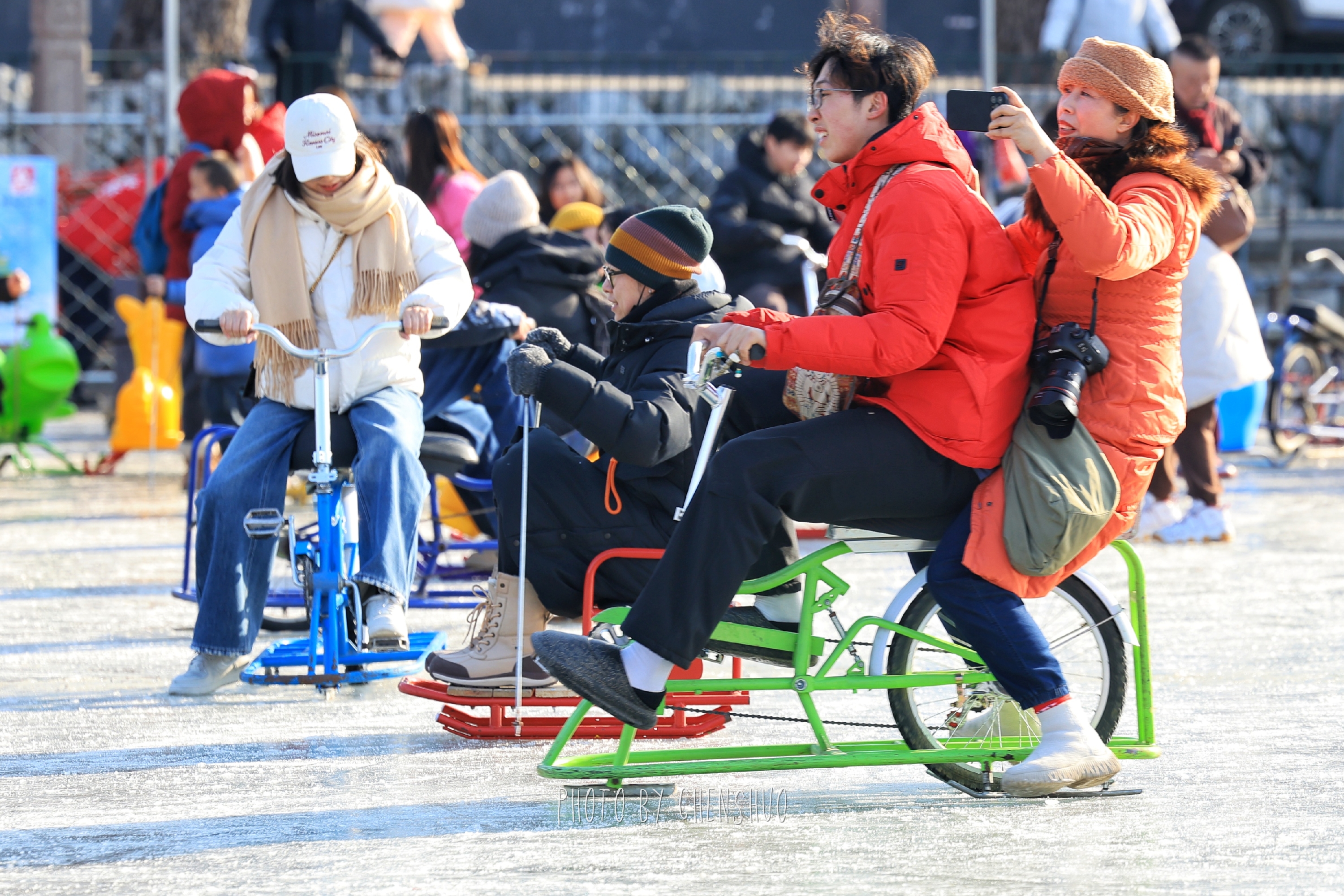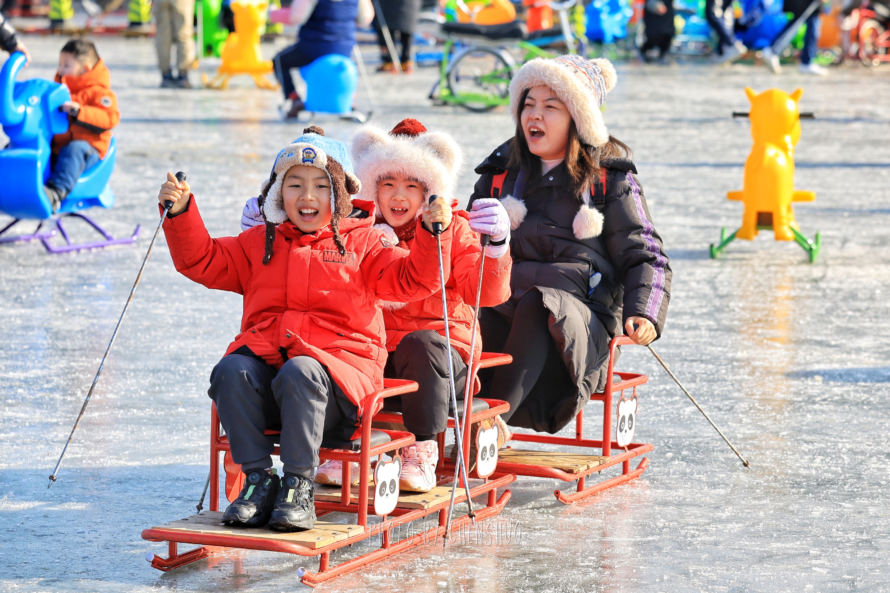 传统冰车是经典款式,亲子组队玩“冰上小火车”,欢乐值拉满;卡通冰车萌趣造型戳中童心,小朋友看到就挪不动脚;冰上自行车轻松好驾驭,冰面“骑行”超有仪式感,情侣、朋友同框超甜。