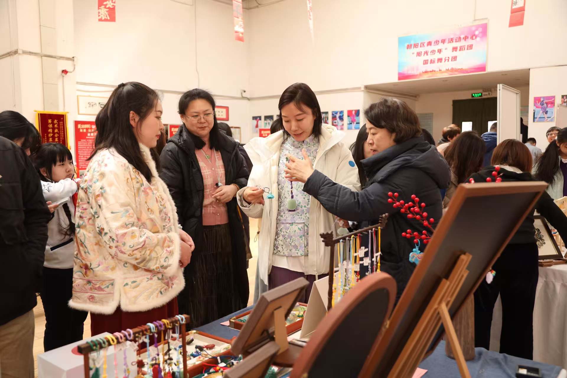 作为闭幕式亮点环节,“雏鹰创意创想集市”以“实践性创作+多元化展示+沉浸式交易体验”的特色模式,成为整场活动的“人气焦点”。朝阳区校内外的10所学校12个展位以“北京文化”“中轴线”和“春节文化”为主题,运用扎染、剪纸、掐丝等多种技法设计创意产品,将传统美学意蕴与现代创意巧思深度融合。活动现场,学生们化身为“小掌柜”,热情推介作品的设计巧思与文化内涵。参观者手持“集市创意券”,把饱含年味的创意好物收入囊中。