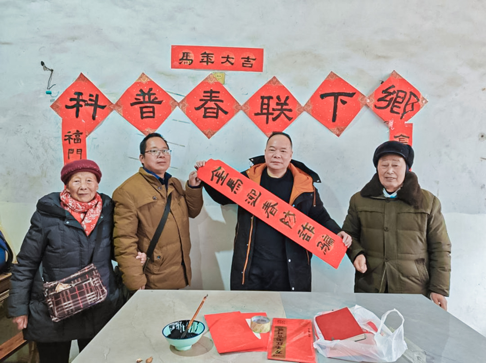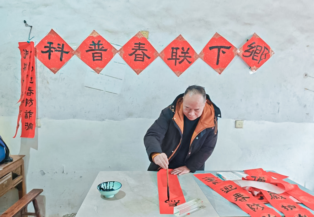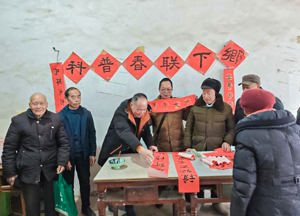 “进入农历腊月后,就进入乡土年味最浓时。在农村,家家户户都要买上五六幅春联,厨房、堂屋、卧房、大门,哪怕是猪圈舍都要贴春联。”谢君宪表示,借着赶集日开展这样的送春联活动,既是科普,更是年味的守护。