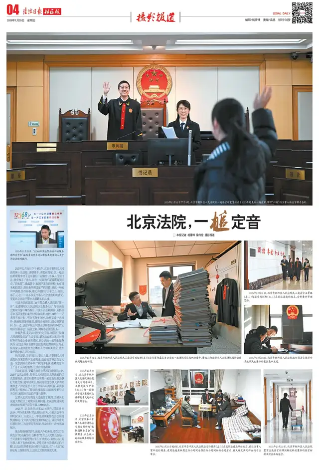 2025年,北京法院结案121.6万件,同比增长20.3%,平均结案用时同比缩短15.7天,小额诉讼平均用时仅19天;六成以上一审民商事案件在诉讼前端快速解决;全年执行到位金额1358亿元;通过探索判后履行指引、执前督促等机制,推动纠纷一次性高效解决。