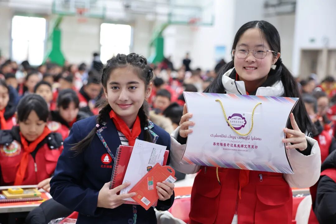 “一纸书信,跨越山海;见字如面,同心同行。”作为北京市品牌育人活动,“见字如面”书信结对环节成为仪式上的温情亮点。五地学生手持提前写好的书信与特色礼物,与线下首次见面的笔友面对面进行交换,从线上的文字知己变为线下的并肩伙伴。“我把一个手拿哈达的布娃娃送给了结对伙伴,也收到了北京同学精致的冰箱贴和台历。”青海玉树市第二民族完全小学的学生宗色诺措表示,这份跨越千里的情谊让自己倍感温暖。据悉,该活动已带动五地中小学生手写数万封书信,成为深化民族团结教育的生动实践。