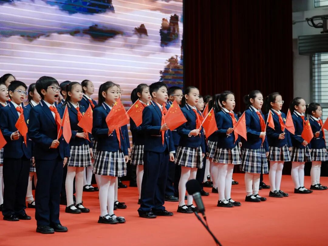 仪式最后,全体人员起立合唱《我和我的祖国》,悠扬的歌声回荡在校园上空。京藏、京疆、京青、京蒙结对师生分别合影留念,用镜头定格这一珍贵时刻。