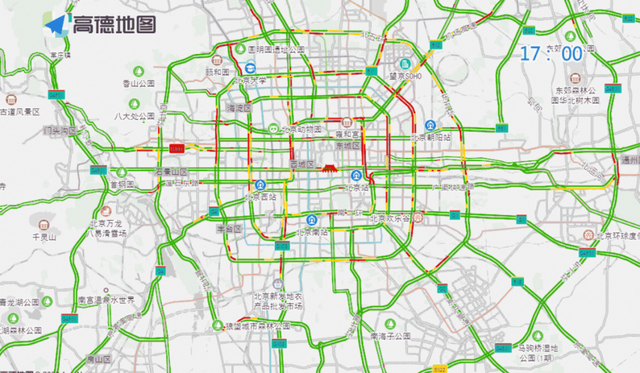 晚高峰期间,城区环路、东六环部分路段,以及万泉河路至圆明园西路、通惠河北路、京通快速、莲石东路等道路出城方向车流集中,京藏高速、京承高速、京港澳高速、机场高速等高速公路出京方向车流量大,高峰时段为17:30至20:00,周二、周五晚高峰通行压力将尤为突出。