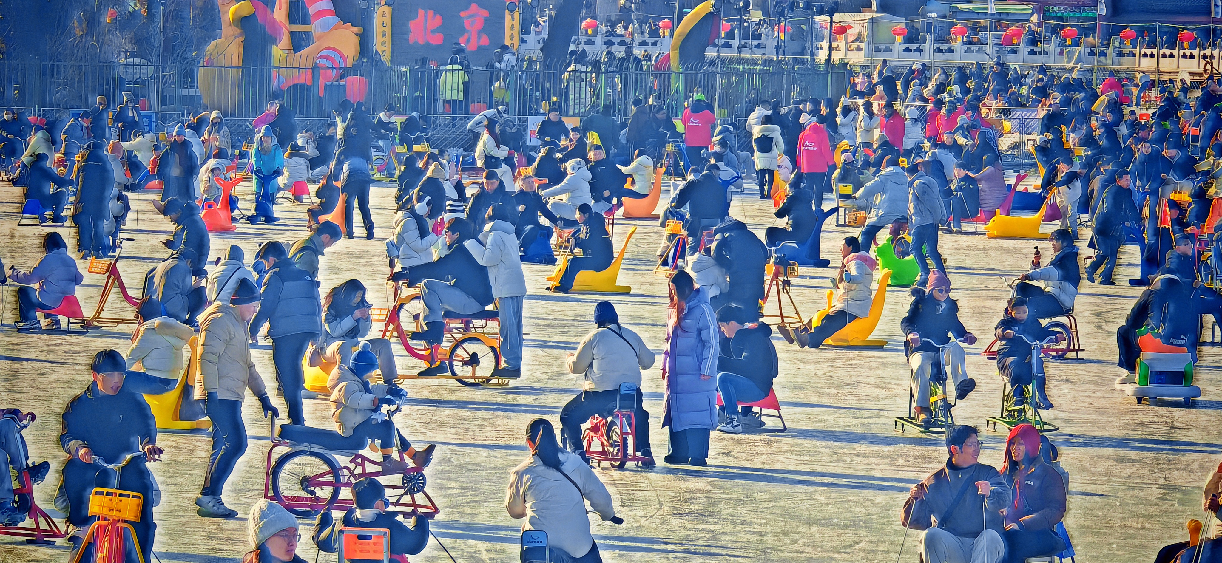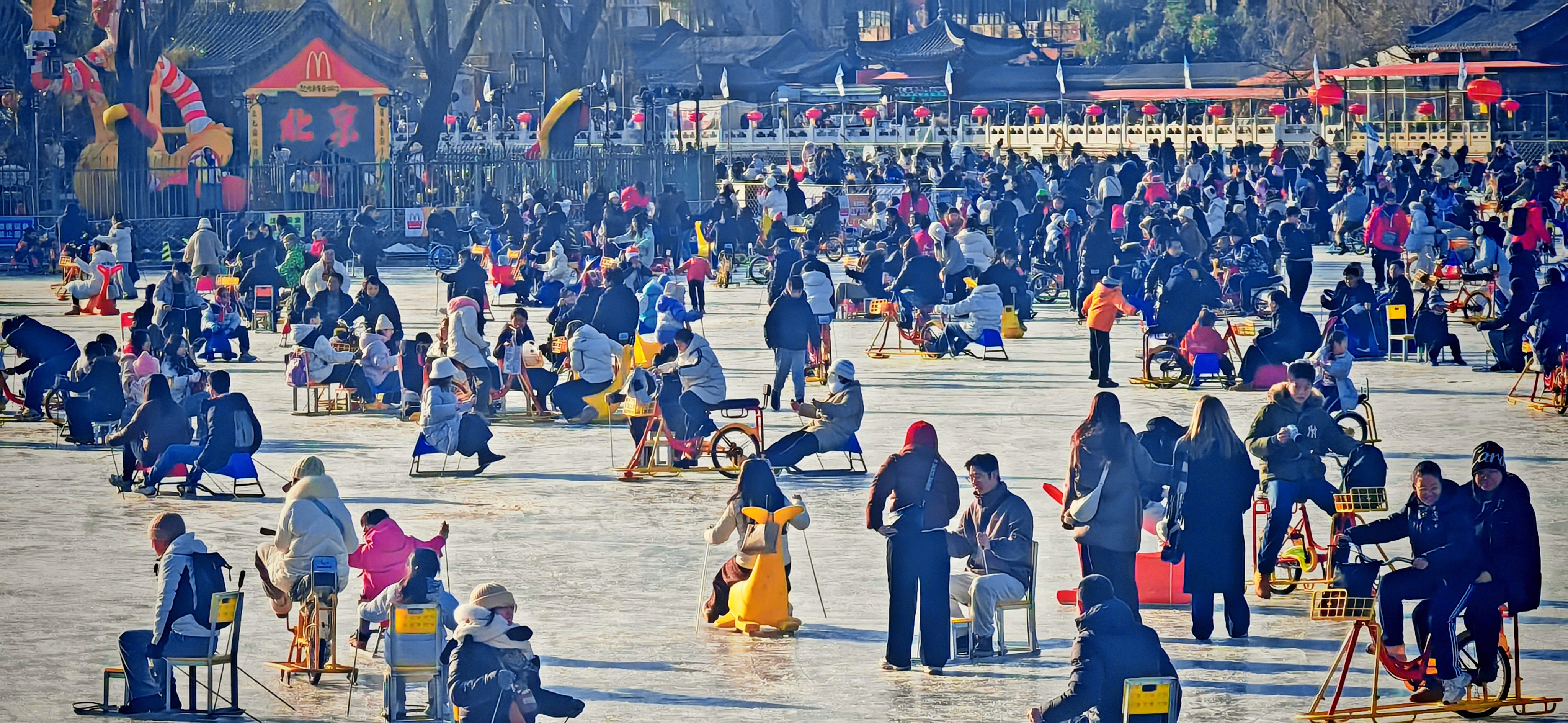 2026年1月24日,北京西城区什刹海前海冰场一片沸腾,宛如欢乐的海洋。 当日,北京天气晴朗,气温回升,又恰逢周末,众多市民与八方游客在前海冰场相遇,无论是老北京的“冰上情怀”,还是远方来客的新奇尝试,人人兴致勃勃,整个冰场俨然成了冬日北京一幅动态而温暖的画卷。