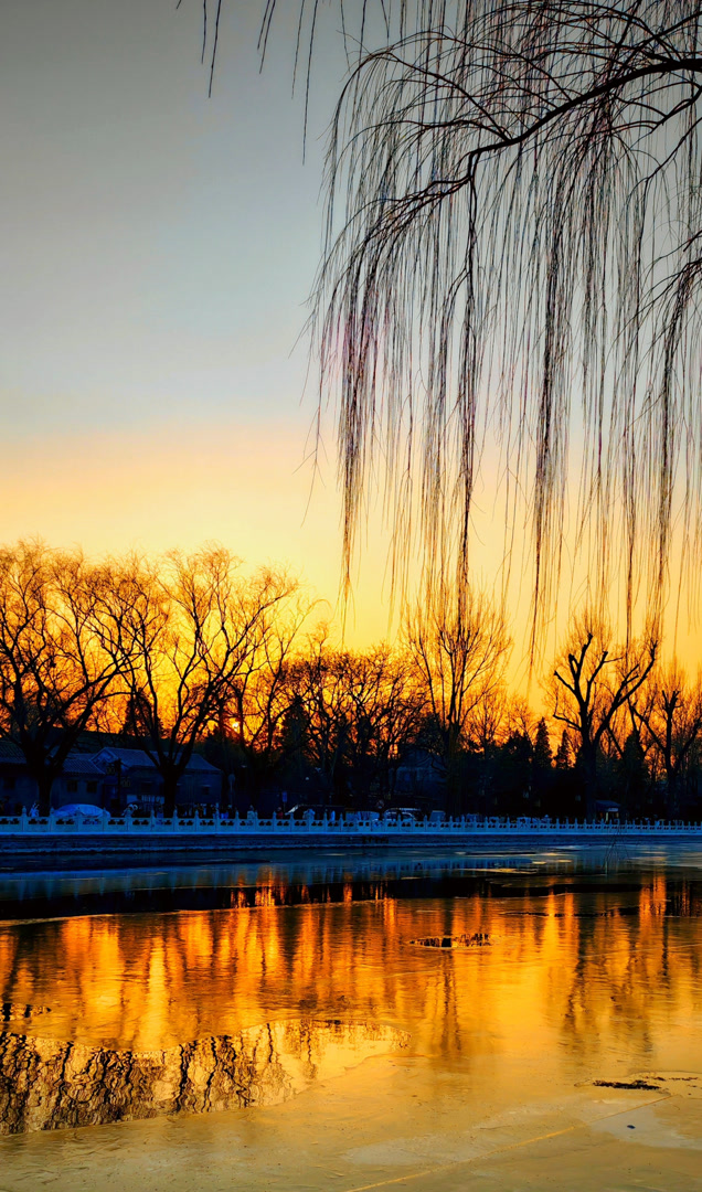 暮色四合前,什刹海后海迎来一日中最温柔的时刻——夕阳正以天光为颜料,完成一次庄重的告别。
