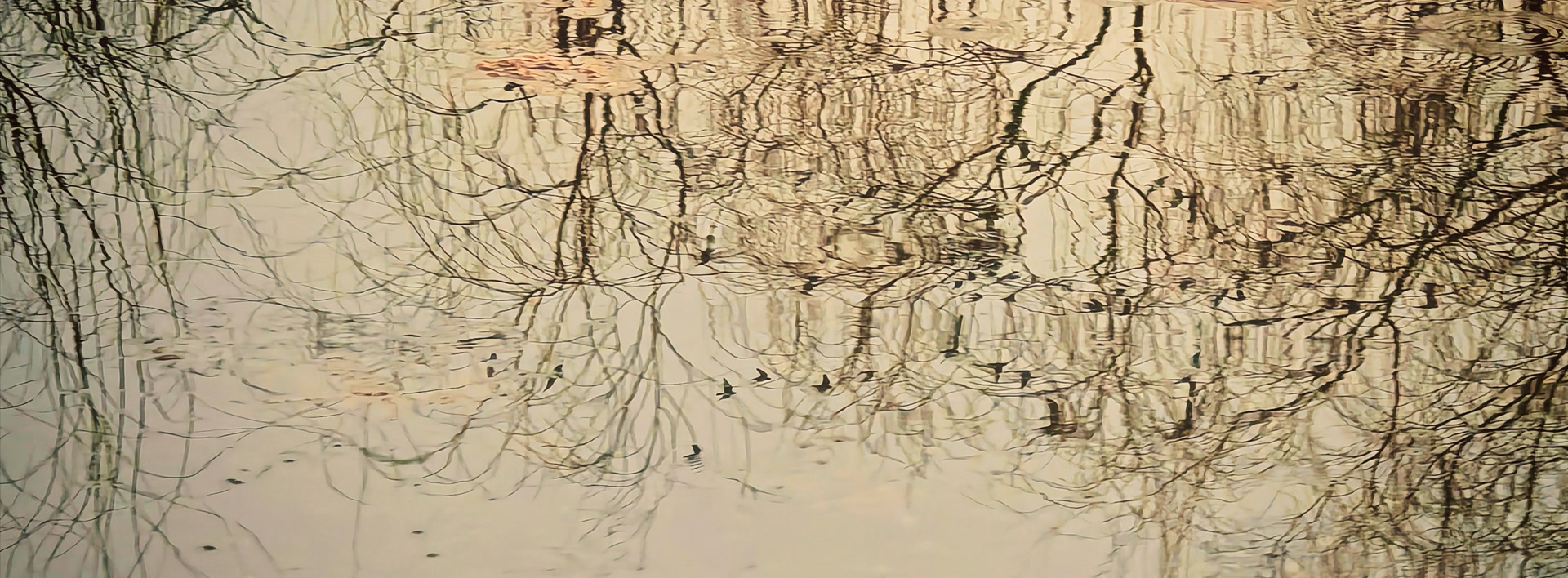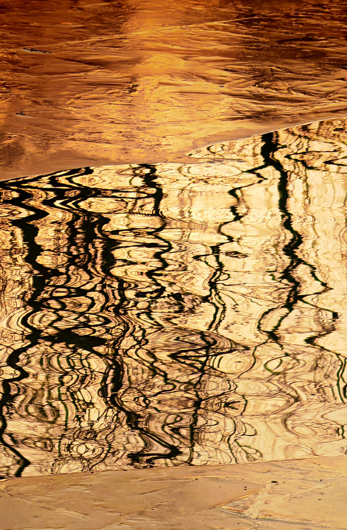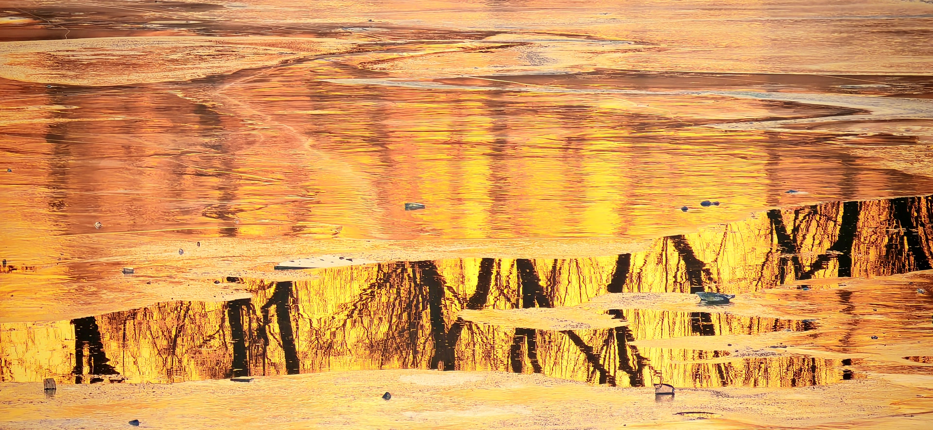 细观湖面,冰并非全然封合。有一泓未冻的活水,宛如冰面悄然睁开的眼眸。夕照坠入这清澈的瞳孔,被水流揉碎成万千缕金丝,在水下摇曳、流转、明明灭灭。
