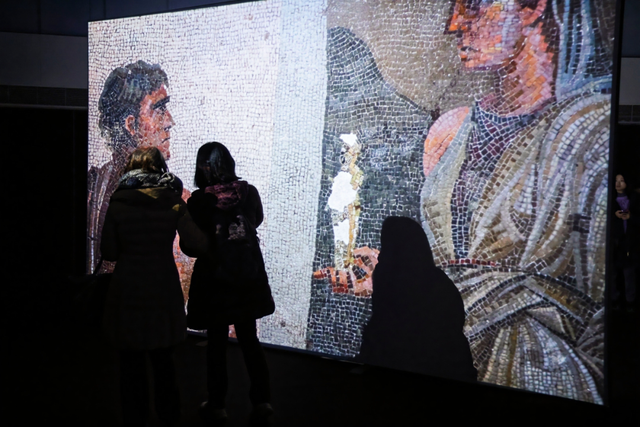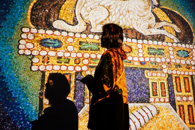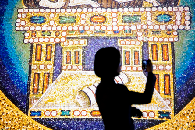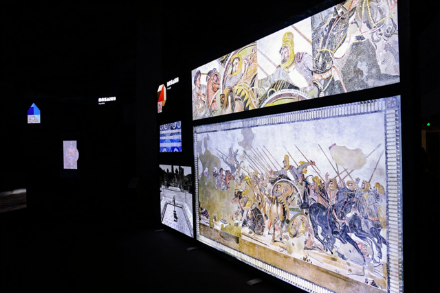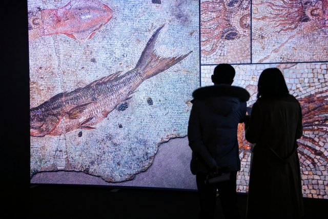 展览通过精心设计的观展路径,串联起罗马、庞贝、阿奎莱亚、拉文纳、巴勒莫、蒙雷阿莱、阿尔梅里纳广场及沉没之城巴亚等八大艺术地标,将分散于意大利各地的马赛克经典杰作集中呈现。七大展区篇章层层递进,数字化重现了庞贝古城 “伊苏斯战役” 马赛克镶嵌画的恢弘气势、拉文纳圣阿波利纳里教堂拜占庭风格马赛克的神圣典雅等珍贵艺术符号。观众无需远赴亚平宁半岛的考古遗址,便能在沉浸式体验中感知每一块微型镶嵌片的细腻肌理,追溯这门艺术从宫廷专属技艺走向民间普及的演变脉络,深度体悟其背后深厚的历史底蕴与独树一帜的艺术价值。