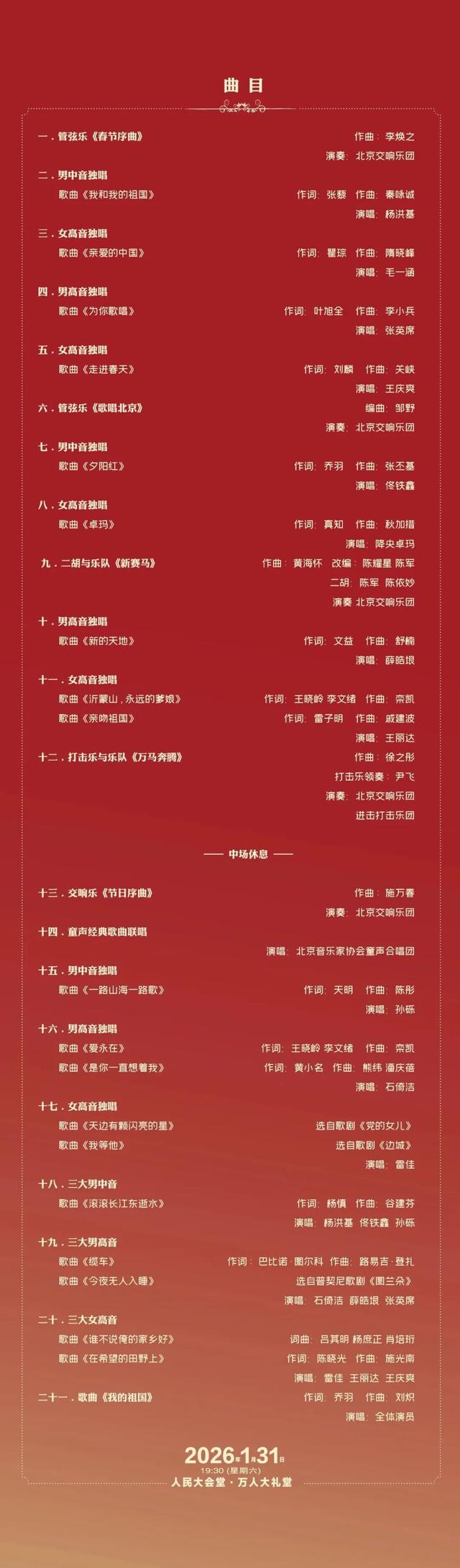 1月31日,北京艺术中心音乐厅将上演“红楼雅韵·金玉交响”长影乐团音乐会,呈现17首《红楼梦》经典曲目,以独唱、合唱与交响乐多元演绎形式,生动勾勒大观园的命运兴衰与人物悲欢。以交响乐为基底,巧妙融入古筝等传统乐器,在保留古典韵味的同时增强叙事层次与情感张力,从《红豆曲》的柔情缱绻到《大出殡》的肃穆苍凉,深度诠释红楼梦的文学内核与精神世界。本场音乐会既是对经典旋律的深情复现,亦是对一代人情感记忆的温暖唤醒,更是一场文学意境与音乐语言相融相生的时空对话。