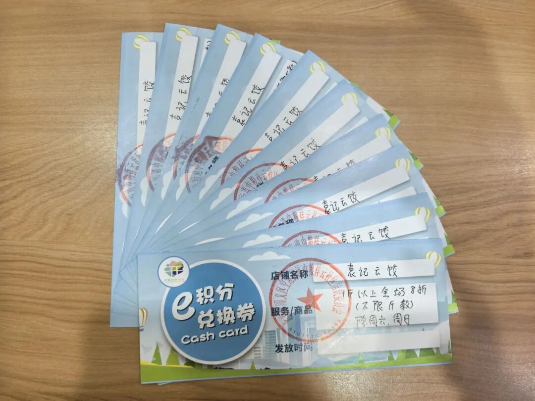 此外,街道创新推出的“星光礼遇卡”激励机制及“e积分”平台,则将志愿服务转化为实实在在的激励。小哥通过参与志愿服务获得相应星光礼遇卡及积分,可兑换餐饮、理发等商户优惠,形成“服务—积分—激励”的良性循环,激发更多人投身共建美好商圈的行列中。