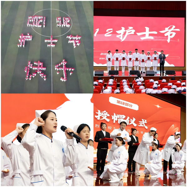 学院把医学人文融入日常育人,连续五年组织“5·12”国际护士节主题活动,通过授帽仪式、誓言宣誓、技能展演与抗疫事迹宣讲等形式弘扬南丁格尔精神,强化职业认同。常态化开展“医学人文讲堂”,邀请临床专家和抗疫代表分享经验;实施“健康科普进社区”项目,年均开展30余场;组织“红色医疗史”主题党日活动,使敬畏生命、大爱无疆的职业精神在师生中生根。