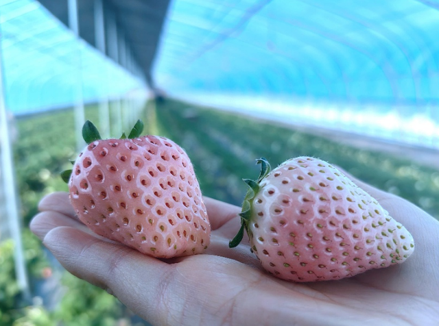 颜色:全身通红均匀,果蒂周围无发白(“白屁股”草莓是未熟透);
