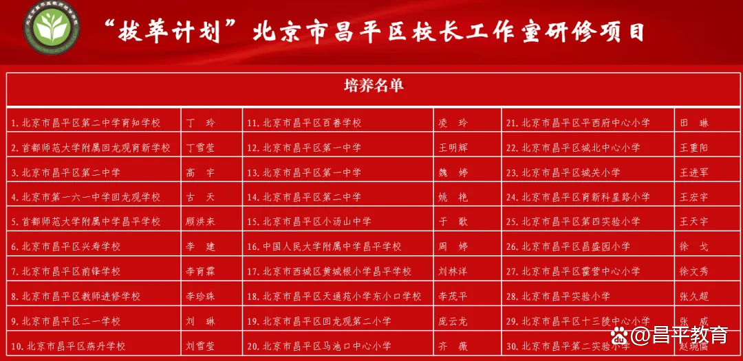 区教委政工科科长王丽娜现场宣读“拔萃计划”北京市昌平区校长工作室研修项目30名学员名单。这份名单不仅凝聚着昌平教育两委对青年管理干部的信任与期许,更标志着30名学员将正式踏上系统化、专业化的研修成长新征程。