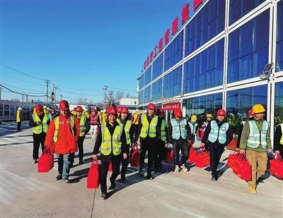 活动现场,慰问组深入施工现场,实地察看工程进展与职工工作环境,与一线工人围坐交流,详细询问大家的工作强度、生活保障及返乡安排,叮嘱施工过程中要注意安全防护,在寒冬作业时做好防寒保暖措施。此次送出的慰问包经过精心筹备,既包含承载新春祝福的春联、吉祥物,也有贴合户外作业需求的防寒物资,还有特色年货,全方位贴合一线劳动者实际需求。