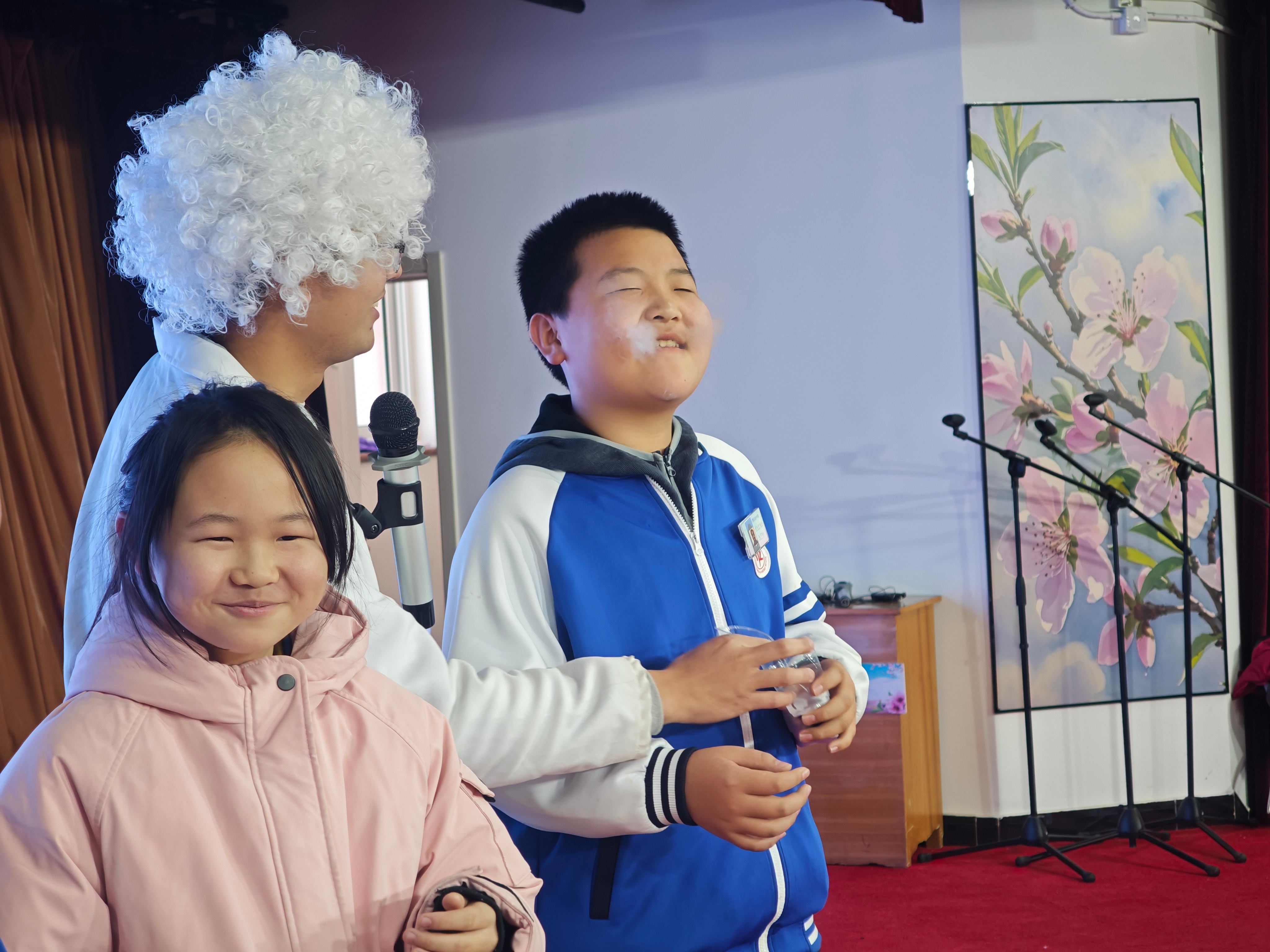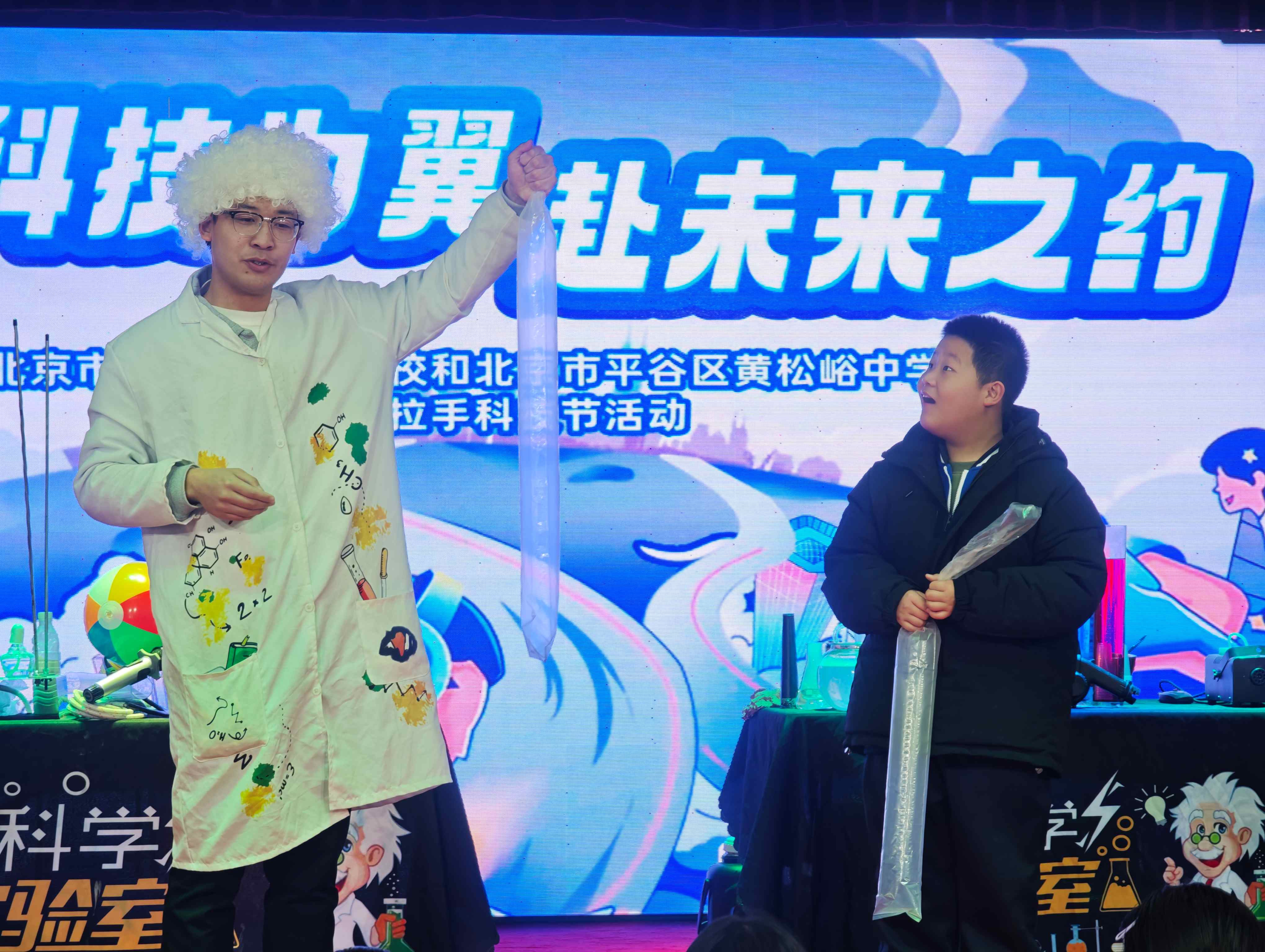 黄松峪中学科技嘉年华设置“开幕盛典”与“AI空间体验”两大环节,分年级有序开展。开幕盛典上,“科学魔法秀”带来了“掌中火”、液氮爆米花、马德堡半球等二十余项趣味实验,将抽象科学原理化为直观体验,激发探索兴趣。现场同时开展纸船承重、水火箭发射等实践项目,从而培养学生解决复杂问题的创新思维与实践能力,并收获数字化时代所需的协作、创造与探究力。