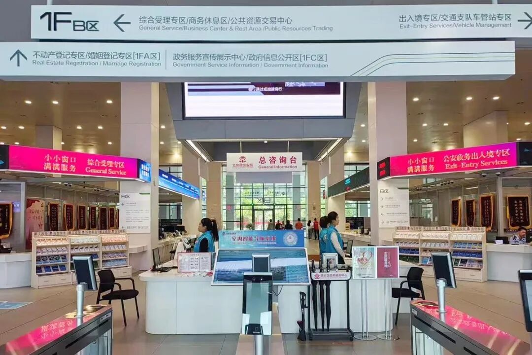 区政务服务中心设有双语标识。