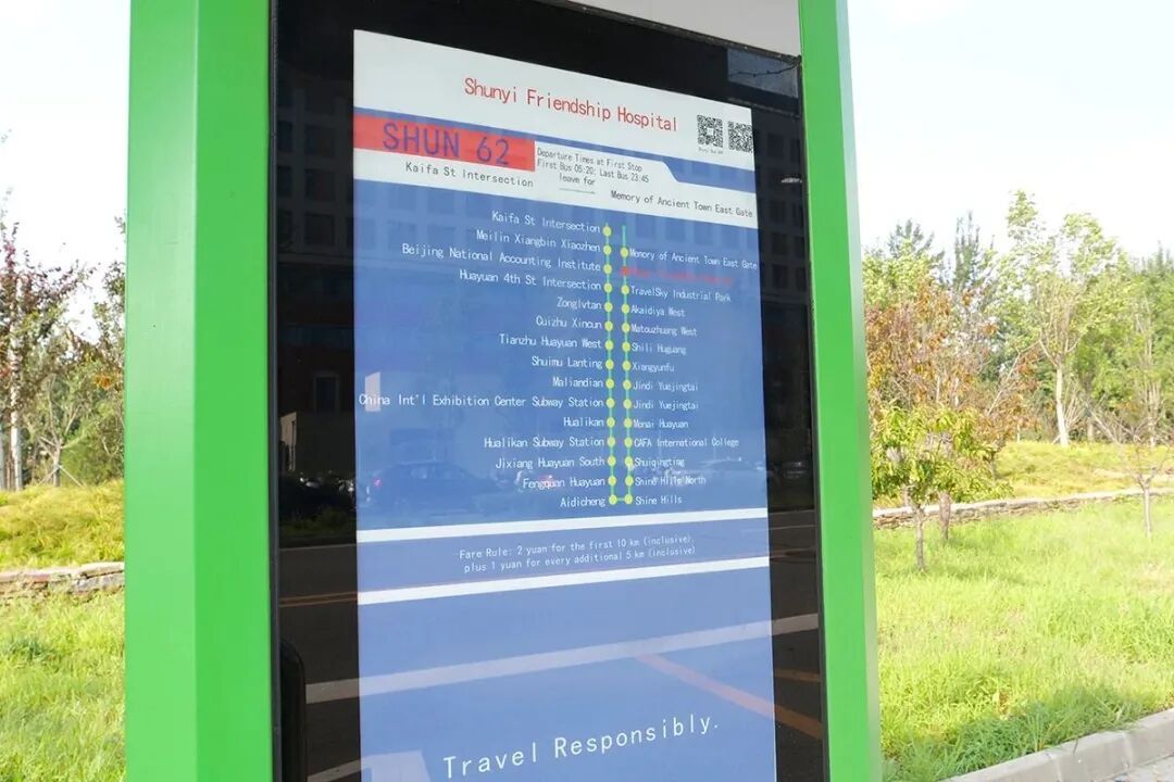 顺62路顺义友谊医院站设立英文站牌。