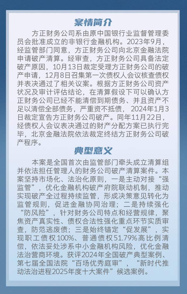 依法审结破产案件964件,通过破产重整挽救专精特新企业27家,引入投资17亿元,化解债务79亿元,“方正财务公司破产清算案”获评全国破产经典案例。