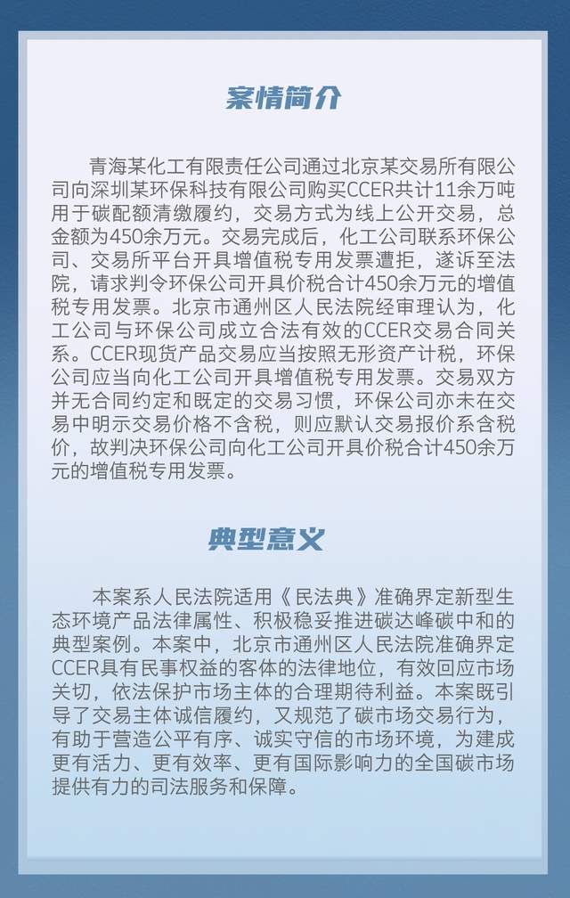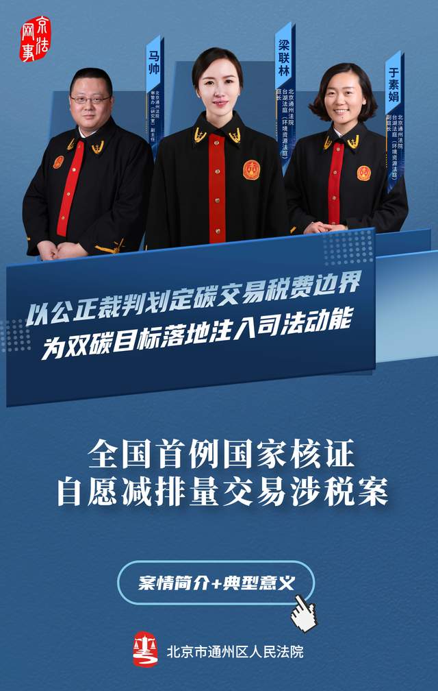 与北京绿色交易所合作建立涉碳交易一站式多元解纷中心,在全国首例国家核证自愿减排量交易涉税案中,为碳市场建设提供法律规则指引,促进绿色低碳发展。