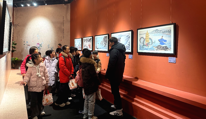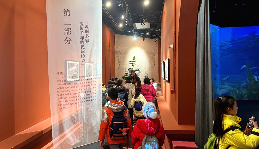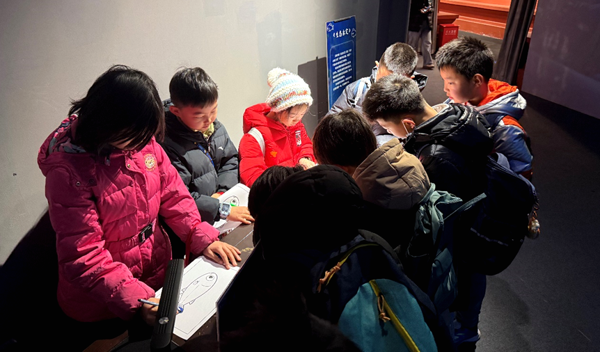 1月27日上午,来自石景山区少年宫的研学团体走进石景山功碑阁一层瞭仓数字藏品博物馆,参观“永定河传说”数字文化艺术展。同学们循着永定河的历史脉络、传说故事与生态新貌前行,在沉浸式观展与趣味 AR 互动中,近距离感受北京“母亲河”的文化根脉。