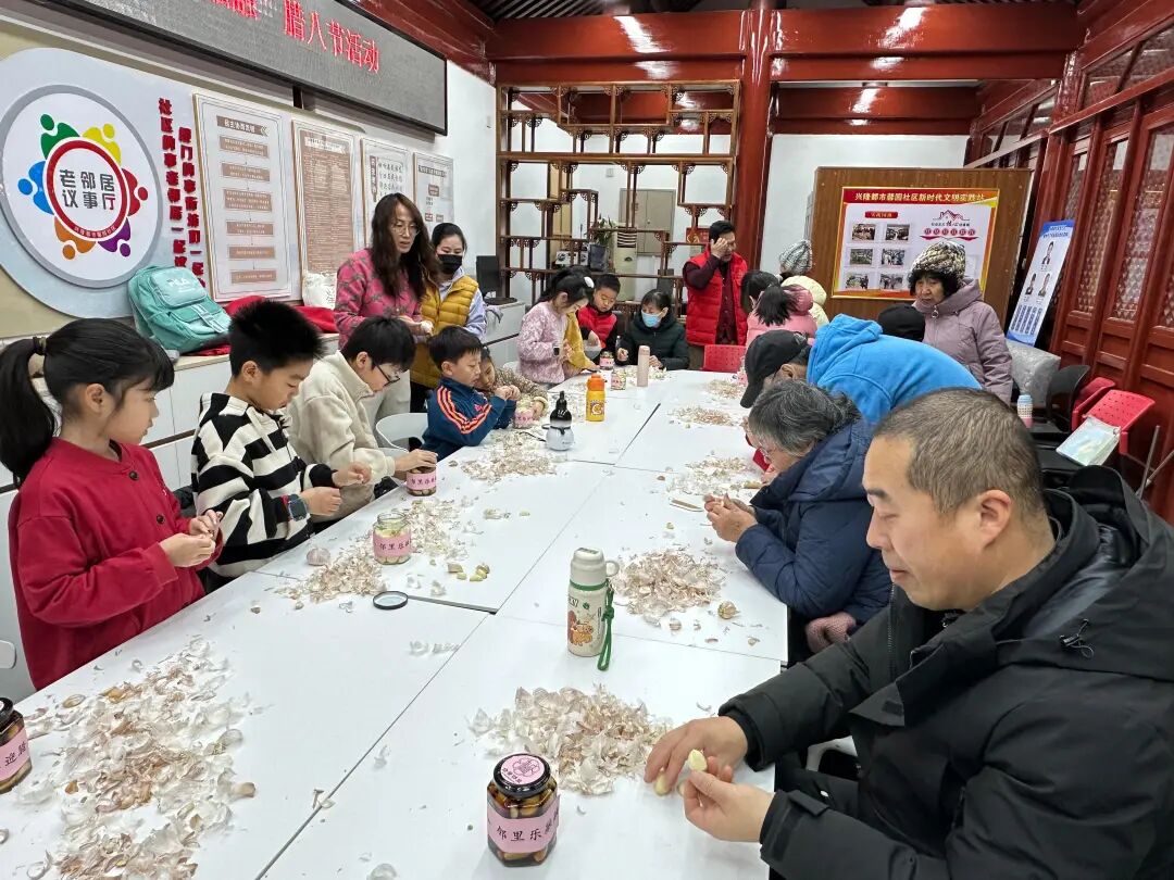 崇文门东大街社区的“蒜香迎腊八”活动更热闹!社工先讲腊八节的由来——从“逐疫祈福”到“团圆分享”,再教大家泡蒜技巧。居民李阿姨说:“以前都是买现成的,这次自己做,还知道了这么多民俗知识,值了!”