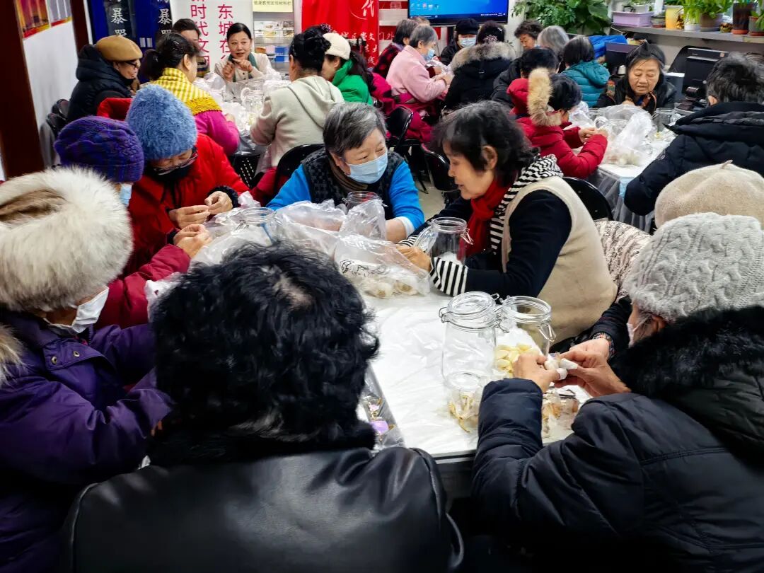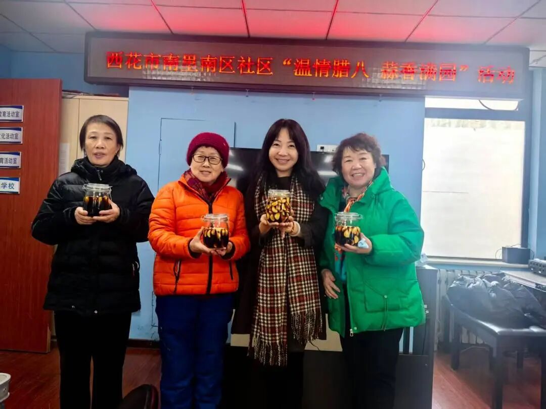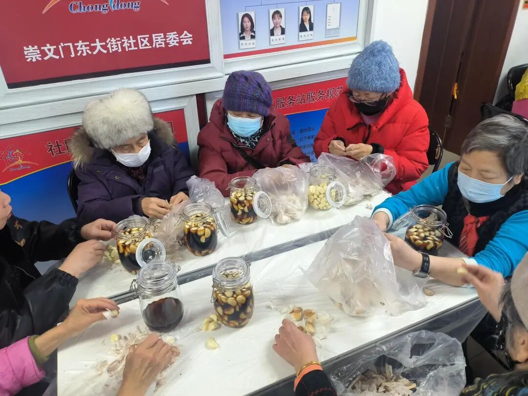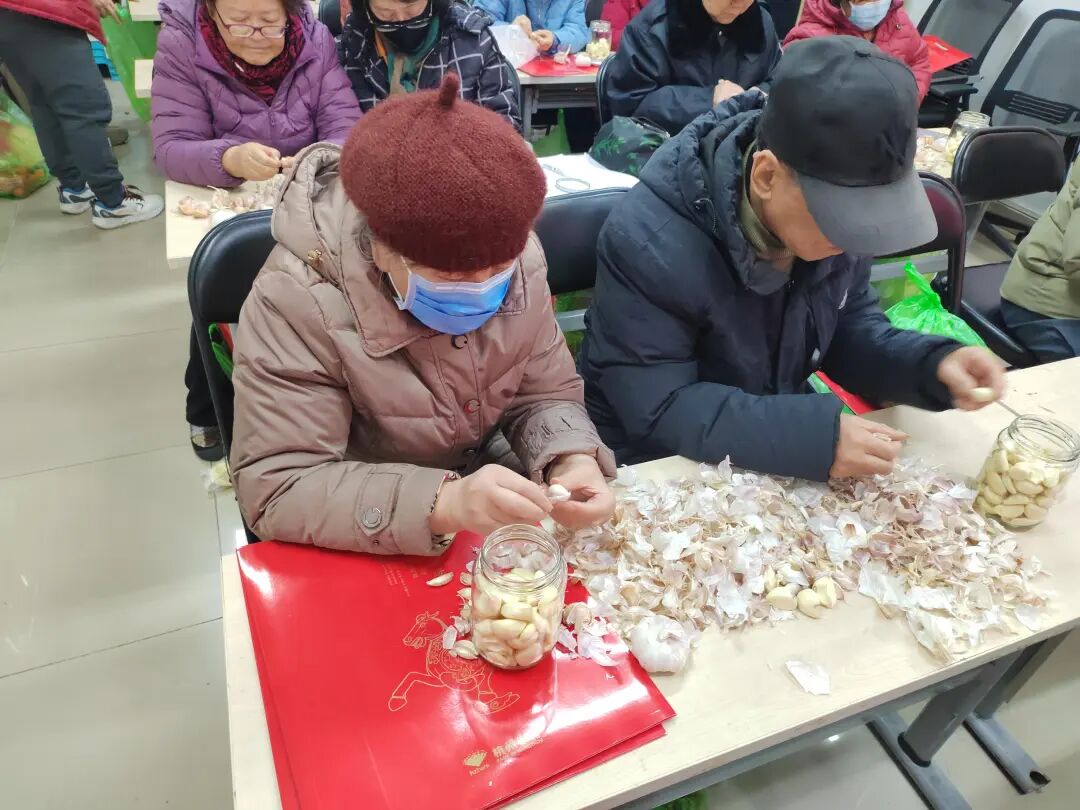 西花市南里南区社区的“温情腊八蒜香满园”活动也人气爆棚,大人小孩齐动手,装满腊八蒜的罐子摆了一排,成了社区里最有“年味”的风景线。