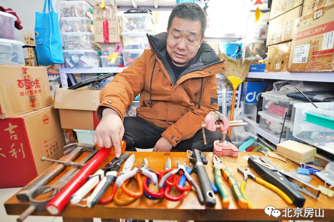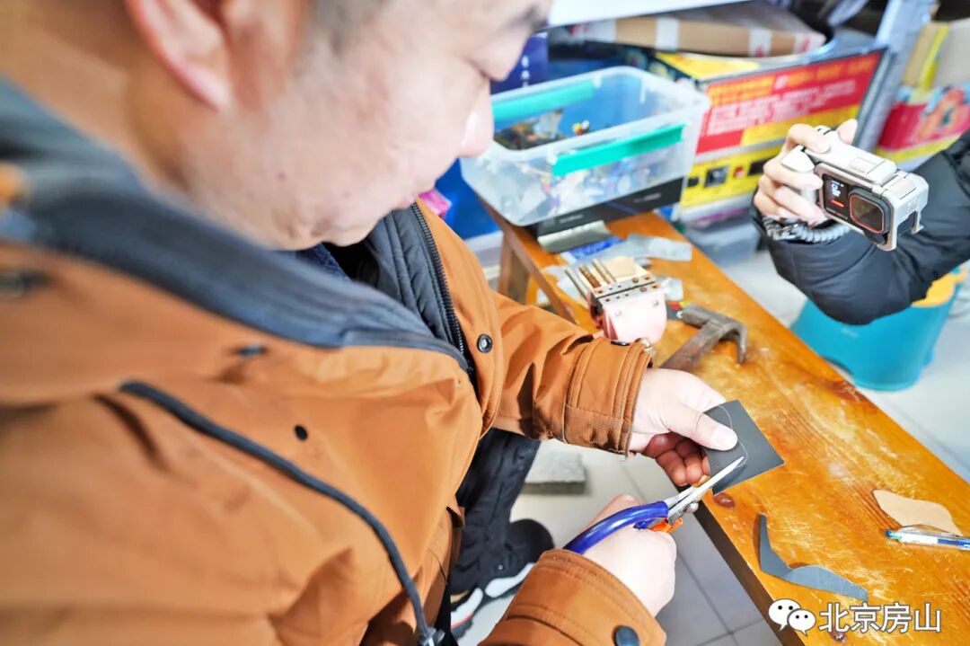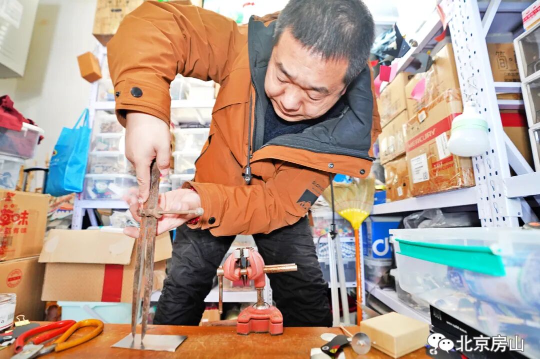 清晨七点半,刚刚结束夜班的王明,匆匆从窦店的单位赶回瓦井村的工作室,为即将到来的农历新年庙会“备货”。工作台上,露露罐、彩纸、丙烯颜料码放整齐,工具箱里的钳子剪子磨得发亮——这些都是他与一门百年手艺对话的“伙伴”。