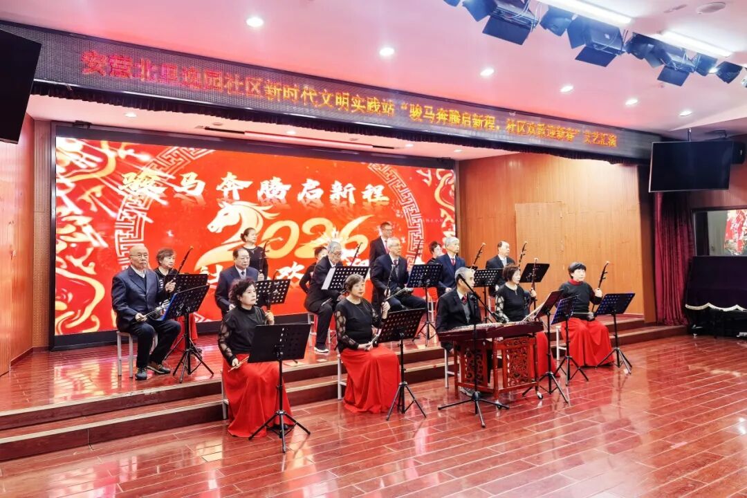 安慧北里逸园社区的新春活动精彩纷呈,为年味再添浓墨重彩的一笔,居民们自编自导自演,歌舞、戏曲、乐器演奏等节目轮番上演,用饱满的热情演绎着对新年的祝福,台下观众掌声不断,欢呼声此起彼伏,老少齐聚一堂,共享文化盛宴。