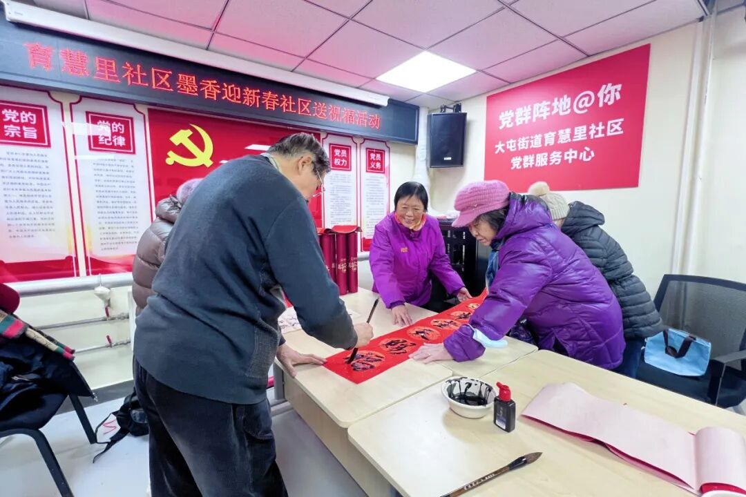 在育慧里社区“墨香迎新春”社区送祝福活动中,喜庆的 “福” 字和寓意吉祥的春联接连出炉。居民们捧着墨宝喜笑颜开,现场墨香与欢声笑语交织。这场活动以字传情,让传统文化浸润人心,更让邻里在温馨互动中收获满满年味。