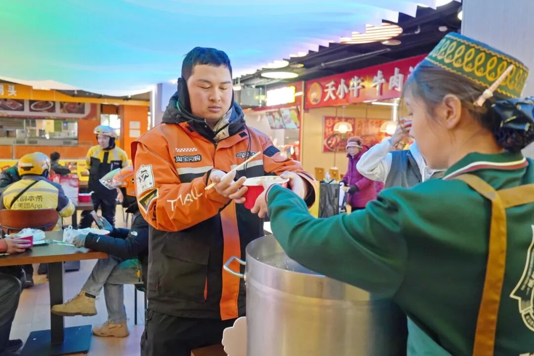 冬送温暖,暖胃暖心。街道党群工作办公室联合金泉家园社区在大屯里商业街开展暖心慰问活动,持续深化新就业群众关爱服务。他们将一碗碗温热香甜的腊八粥递到辖区骑手手中,并为他们送上节日慰问品,感谢他们的辛勤付出。一碗碗热粥不仅驱散了冬日的寒凉,更为新就业群体送去了暖心关怀。