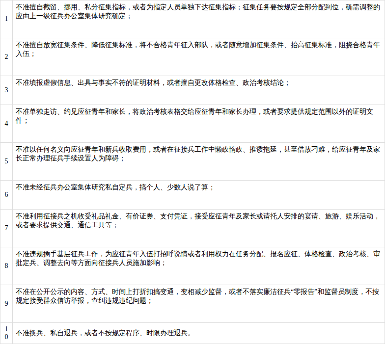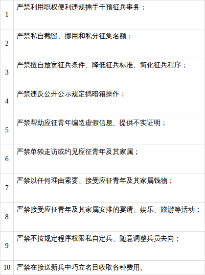 廉洁征兵“十个严禁”