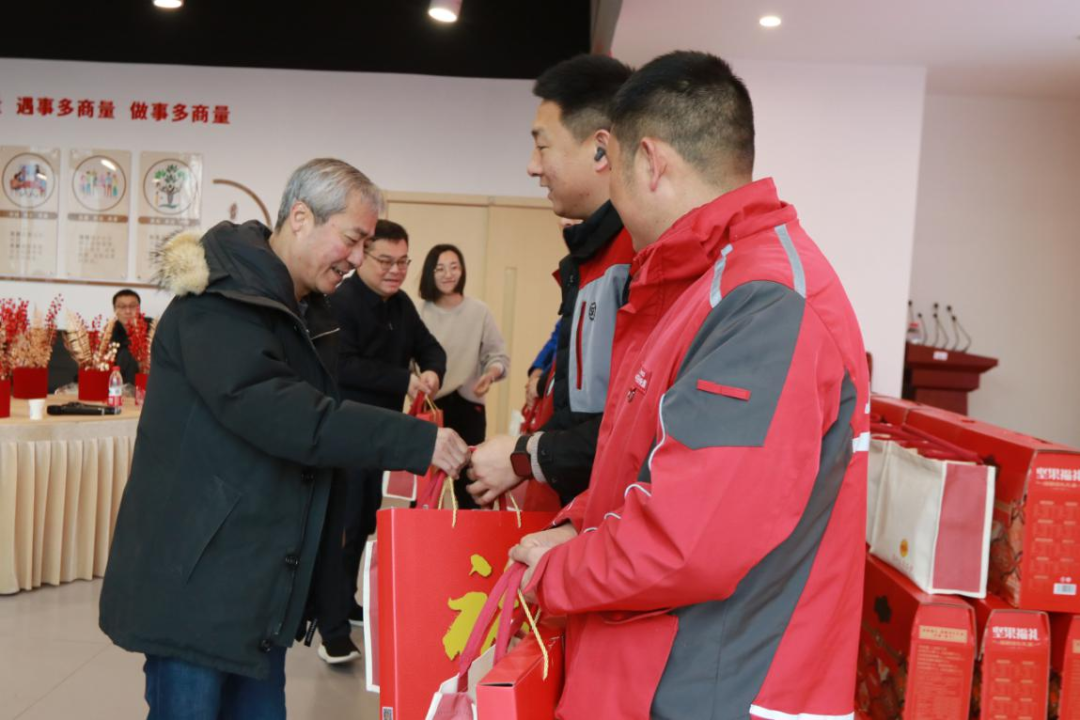 活动现场暖意融融。领导与劳动者代表们亲切互动,共同制作寓意吉祥的新春抱抱桶,感受手作喜悦与浓浓年味。随后,区总工会及街道领导为劳动者代表发放了满载暖意的“温暖包”,表达对大家辛勤付出的感谢与节日的诚挚祝福。