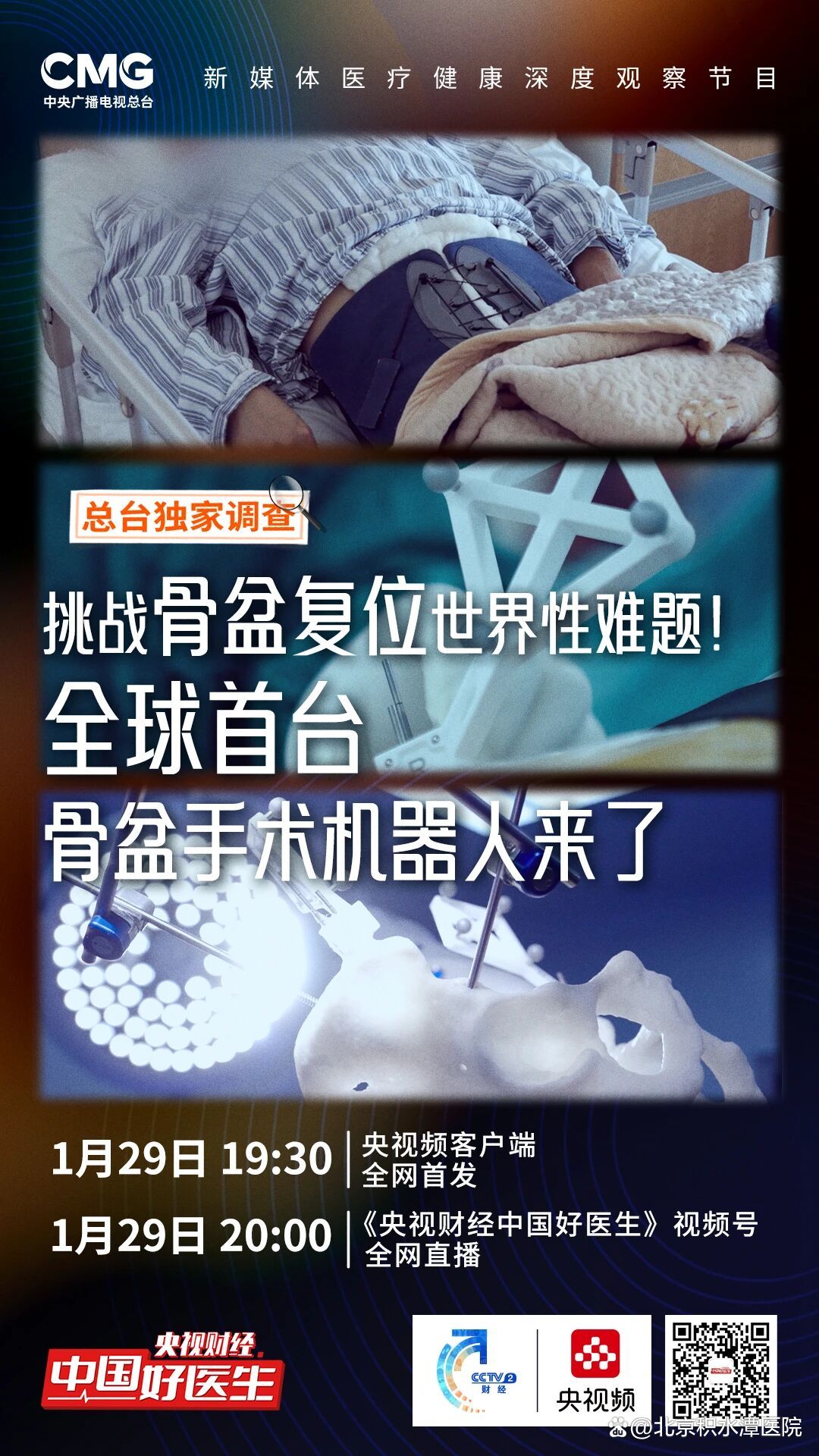 面对骨科临床公认的治疗难题,中国科研团队自主研发全球首个骨盆复位机器人,它能否改变过去的手术模式,它能否让患者治疗更安全、更有效?点击下方【预约】按钮锁定直播间一起见证。