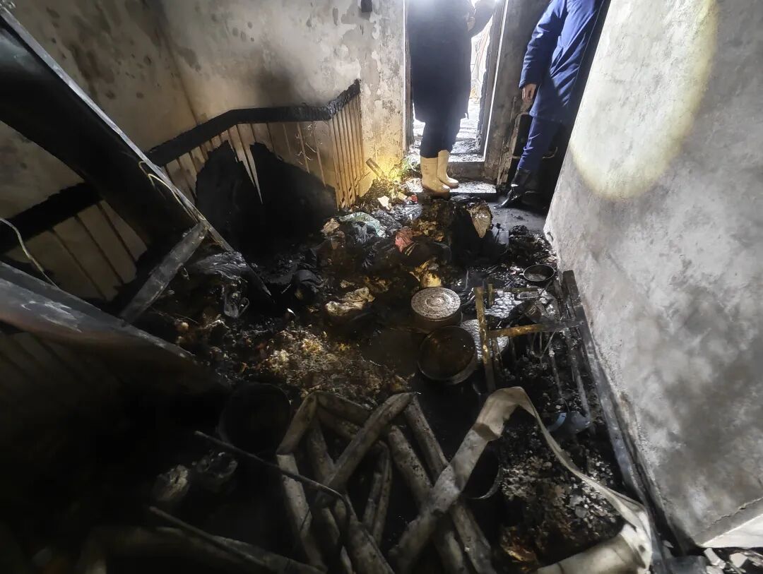 消防救援人员抵达现场时,火势已从放置电饭煲的简易厨房区域蔓延至南侧卧室及过道。“我们到场时,一男子已经踩着窗外四五十公分的斜坡窗沿,转移到了相对安全的露台位置,但他妻子还困在阳台边缘不敢移动,情况十分危急。”参与救援的消防员回忆,他们迅速系上安全绳和腰带,在严密保护下,将其成功救出,两人随后被120救护车送往医院检查。