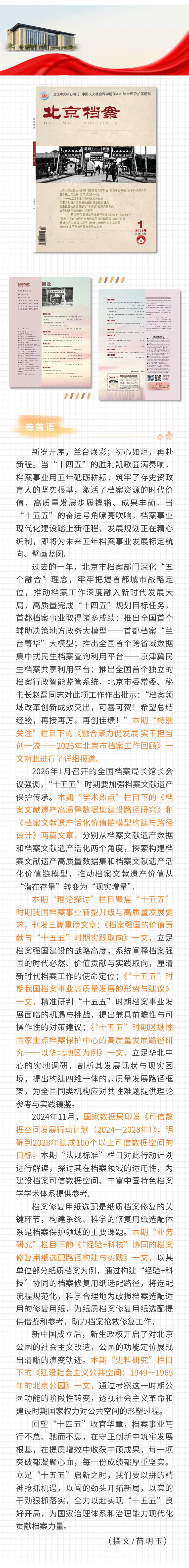 《北京档案》杂志2026年第1期目录一览