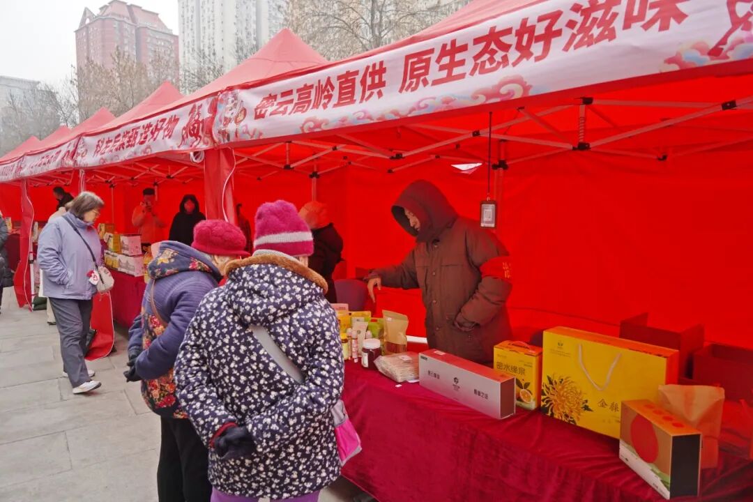 密云高岭镇的生态蜂蜜、清香茶类与软糯红薯制品,带着山林的清新气息而来;内蒙古协作地区的牛羊肉制品、奶制品,裹挟着草原的辽阔风味;长沙驻京办带来的长沙腊味,传递着湖湘的烟火温情……这些源头好物的汇聚,让大屯及周边市民在欢声笑语中购年货、感年味、享实惠,真正实现了"惠民"与"共富"的双向奔赴。