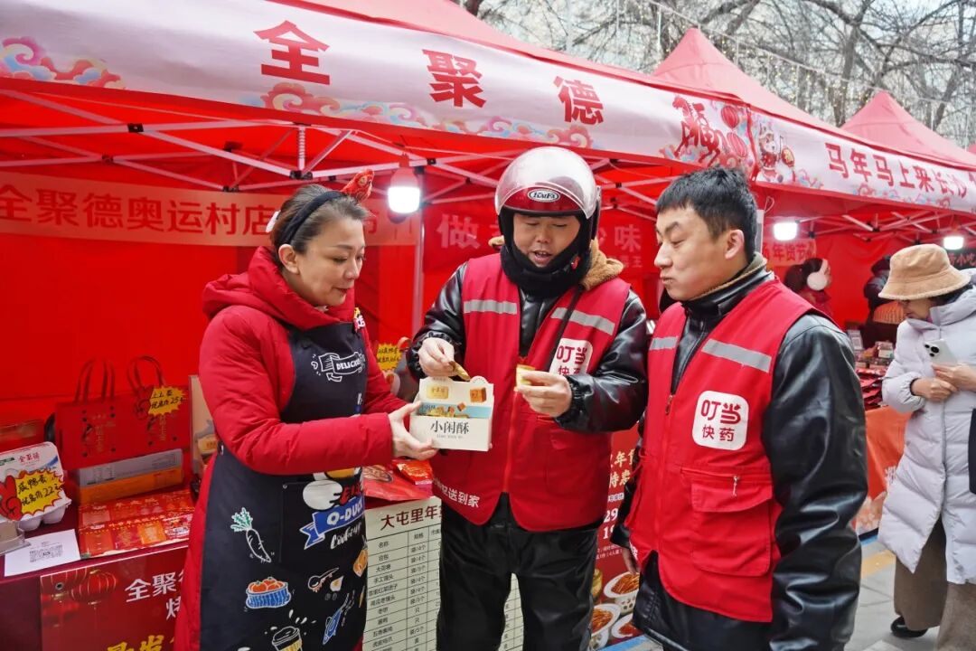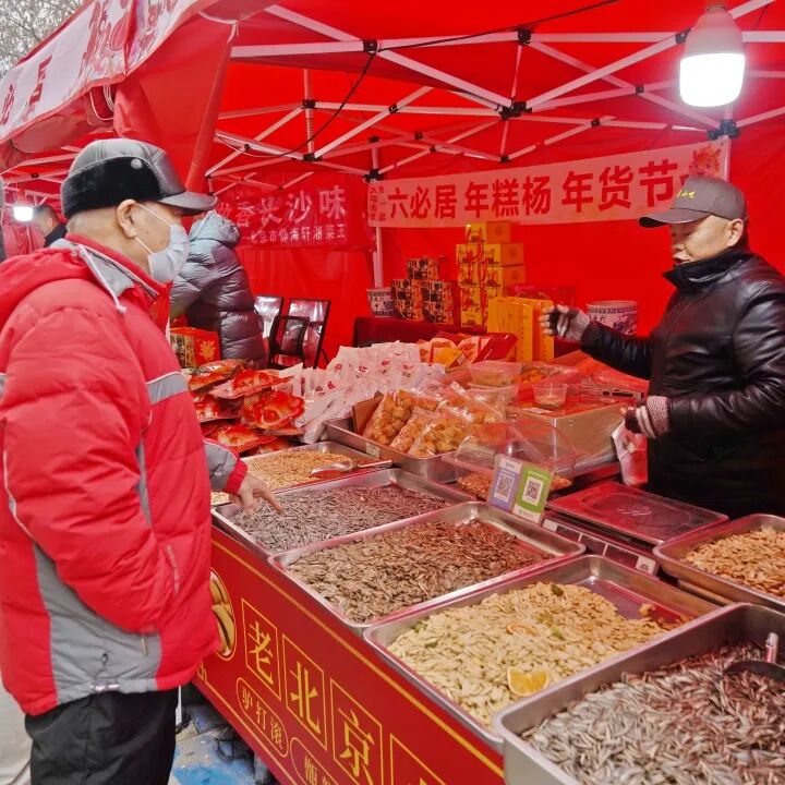 本土特色美食同样是本次年货节的"流量担当"。六必居的非遗酱菜传承百年工艺,酱香浓郁、脆爽可口;紫光园的清真熟食香气四溢,酱牛肉、卤鸡等都是经过时间沉淀的匠心之作;老北京驴打滚、艾窝窝等传统小吃软糯香甜,每一口都是对老北京味道的深情告白。来往顾客驻足挑选,叫卖声、交谈声交织成一片,满是热闹的市井气息和浓浓的年味儿。