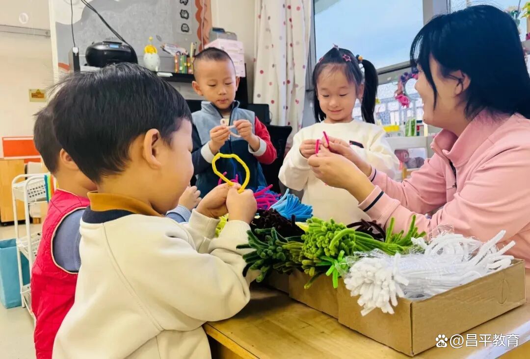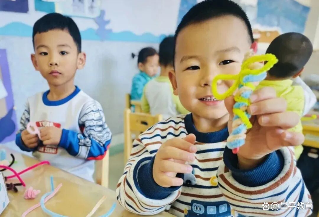 南口镇中心幼儿园的孩子们拿起五颜六色的扭扭棒,通过看、摸、试,自主发现扭扭棒的秘密,从制作魔法棒、宝石发卡,到合作完成“扭扭小虫”、新年鞭炮与烟花,每一步都充满创意与挑战。在自由探索与合作游戏中锻炼了动手能力,更在解决问题、同伴互助中收获了成长。
