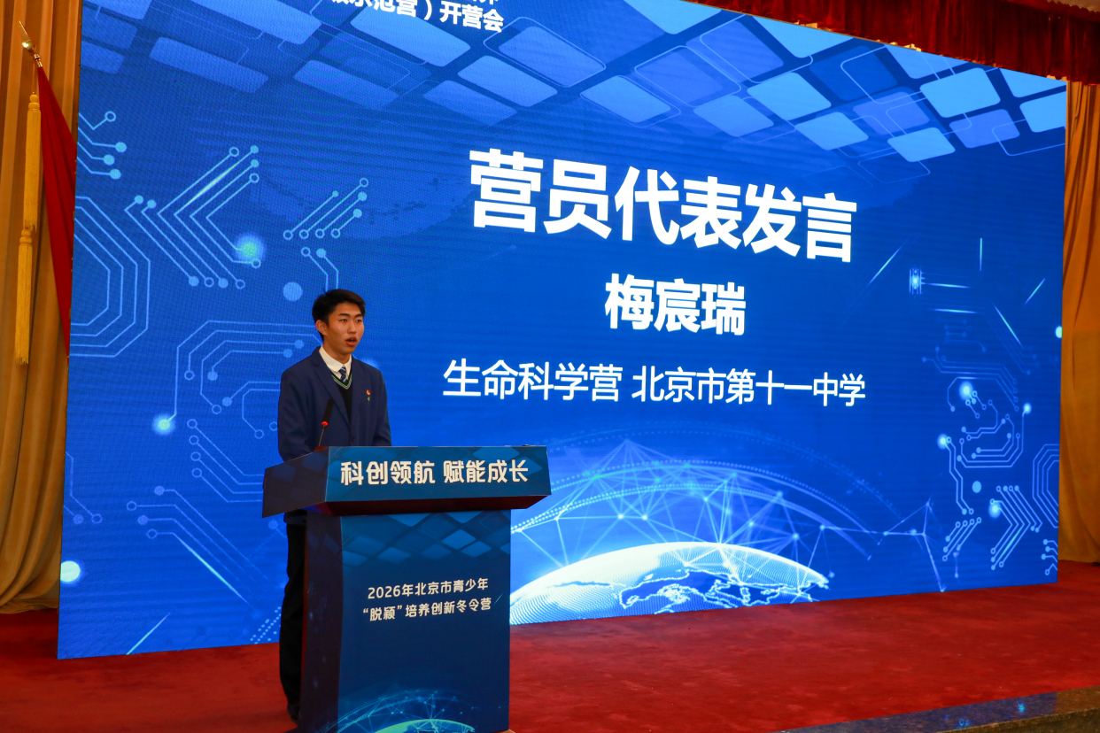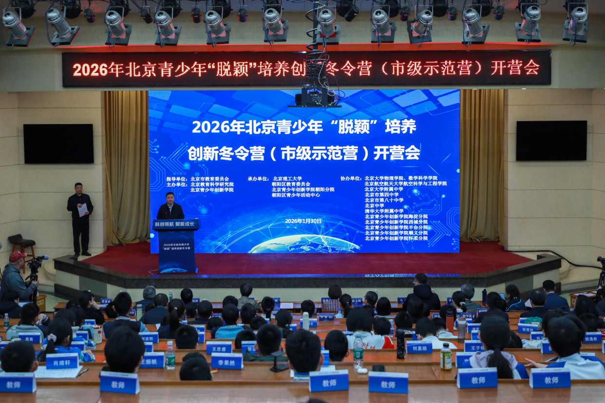 1月30日,2026年北京青少年“脱颖”培养创新冬令营(市级示范营)开营会在北京理工大学中关村校区举办。本次冬令营以“科创领航赋能成长”为主题,涵盖“极智挑战”“数学英才”“深蓝智脑”等11大领域,不仅是一场属于青少年的科学盛会,更是北京市深度融入教育强国建设全局,构建首都特色的青少年创新人才培养体系的重要推进。