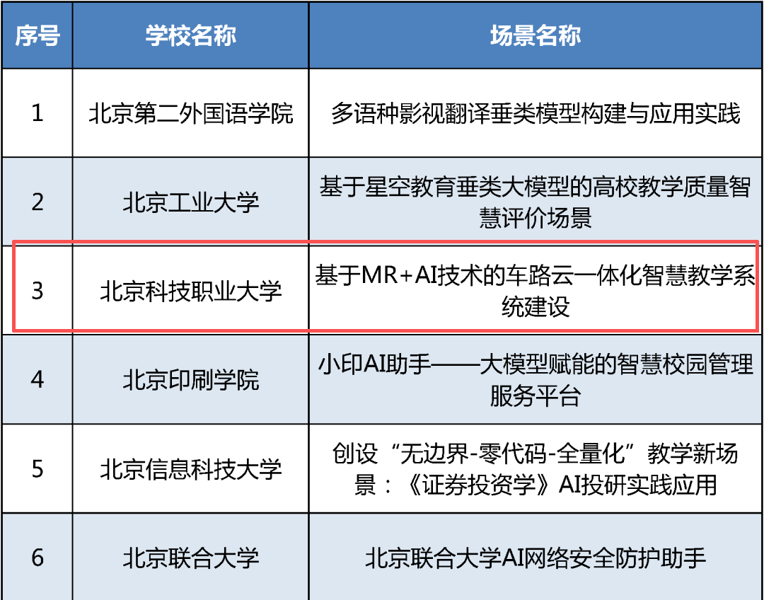 日前,北京市教委公布了第二批高等教育人工智能典型应用场景培育名单,共有20所高校的20个场景入选。其中,位于北京经开区的北京科技职业大学“基于MR+AI技术的车路云一体化智慧教学系统建设”场景入选,一起来看↓↓↓