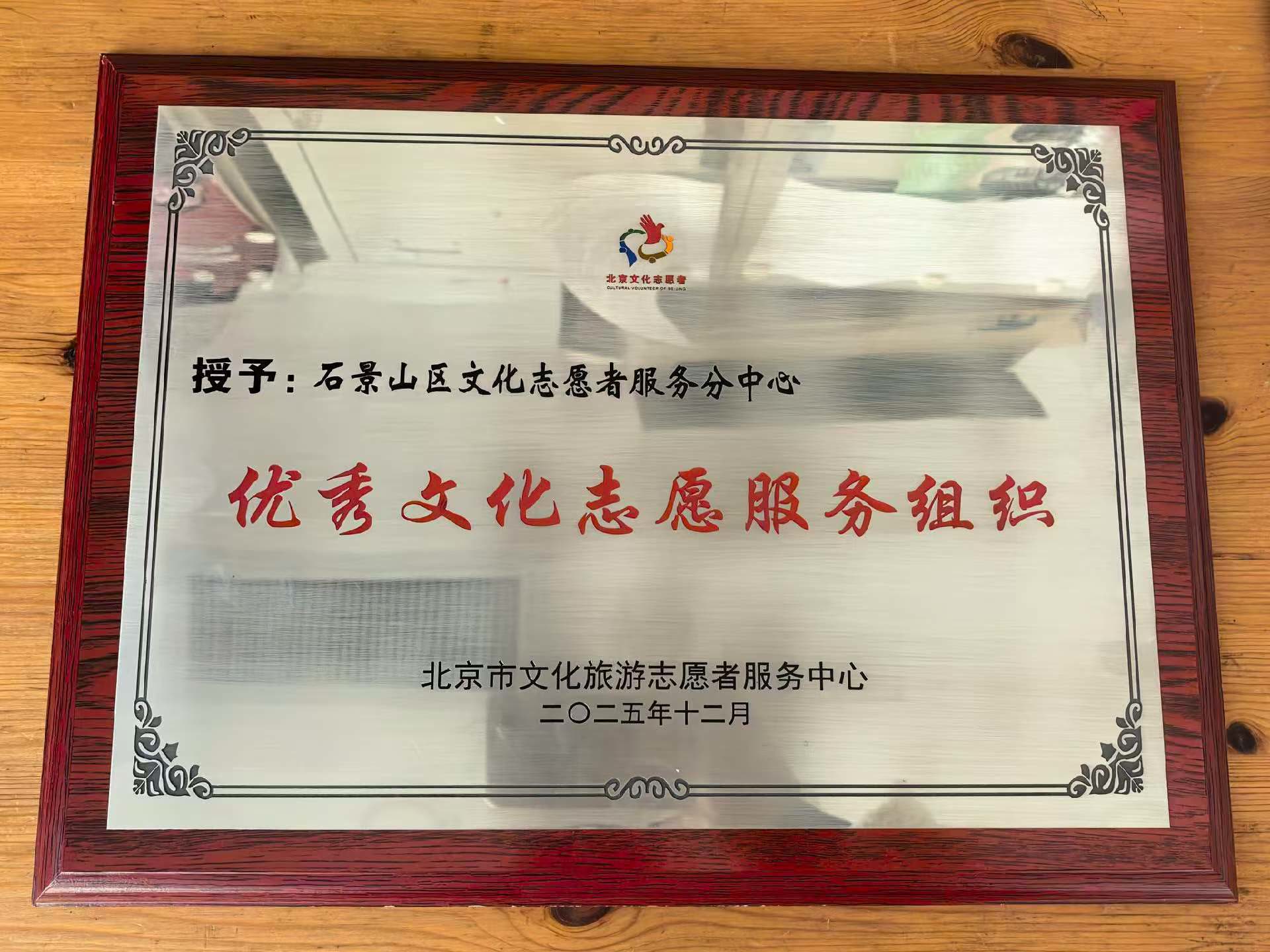 2025年,石景山区文化志愿者服务分中心被北京市文化旅游志愿者服务中心评为北京市“优秀文化志愿服务组织”。