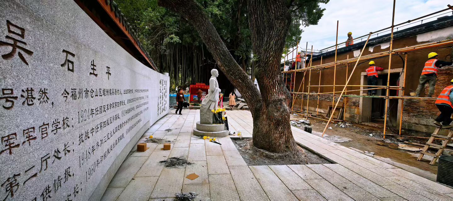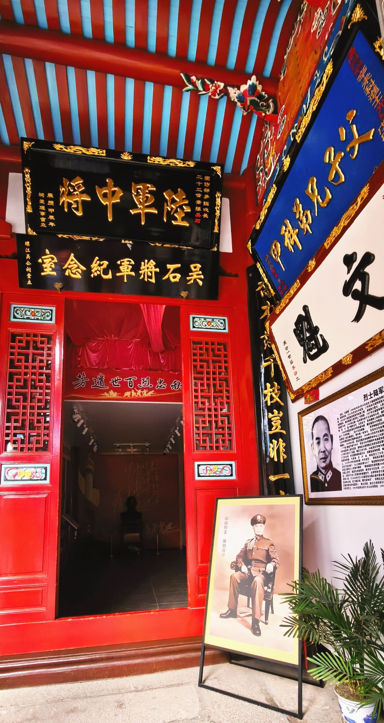 工人们也正专心地修缮着这座602平方米的三进院式民居。一位吴氏本家老者闲谈间翻开了古镇的记忆:这里是将军的出生地,正厅百年格局未改,墙上的画像与文献,静静铺展着这位“吴状元”蜕变为革命先烈的潜伏传奇,但因施工我们无法到里面瞻仰。在吴石将军本家的引领下,我们来到不远处的吴公祠堂,这里显然是近期修缮的,墙上《吴氏祖训》“忠君亲上以报国恩”的字句,早已将家国情怀刻进族人的血脉。