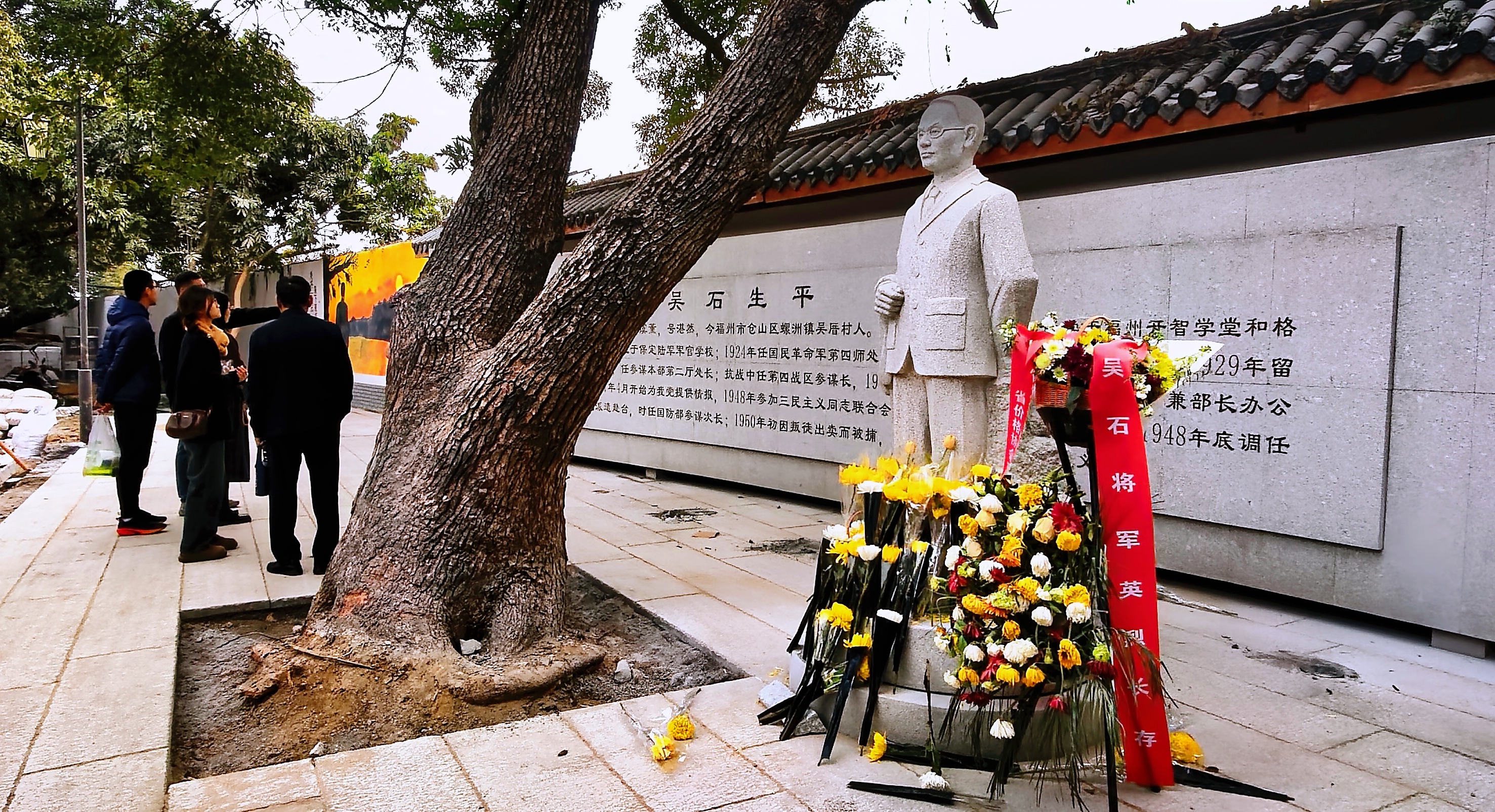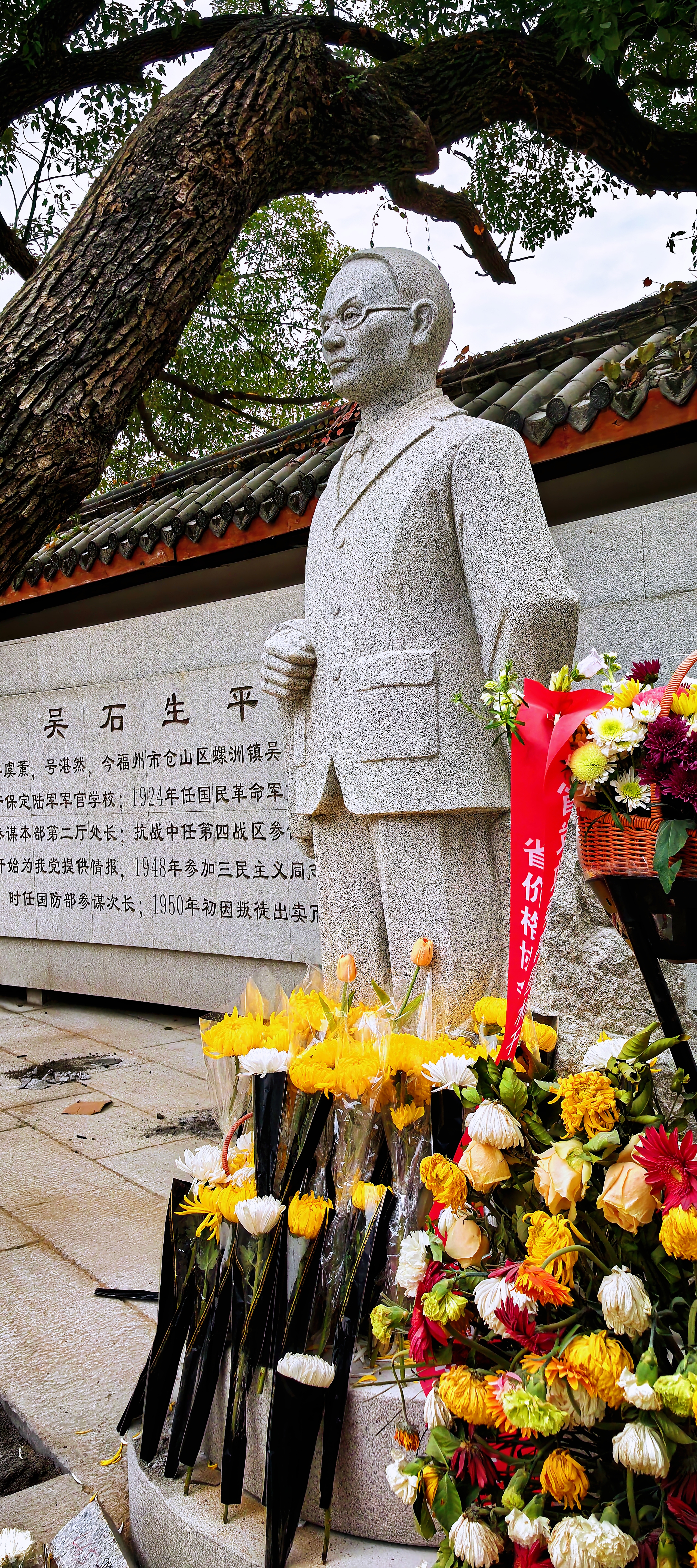 施工围挡并未挡住寻访者的脚步。吴厝村江墘埕1号的吴石将军故居前,祭拜者络绎不绝,有些游客还恭恭敬敬地在吴石将军塑像前献上了鲜花。